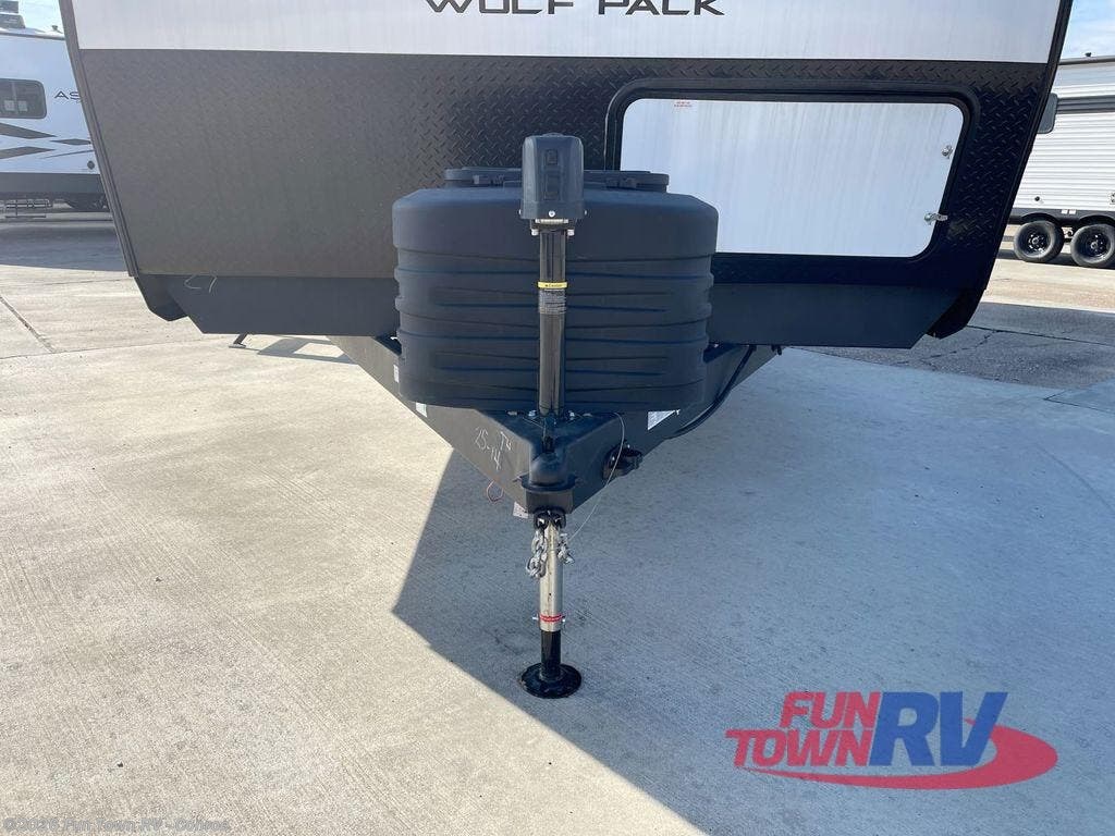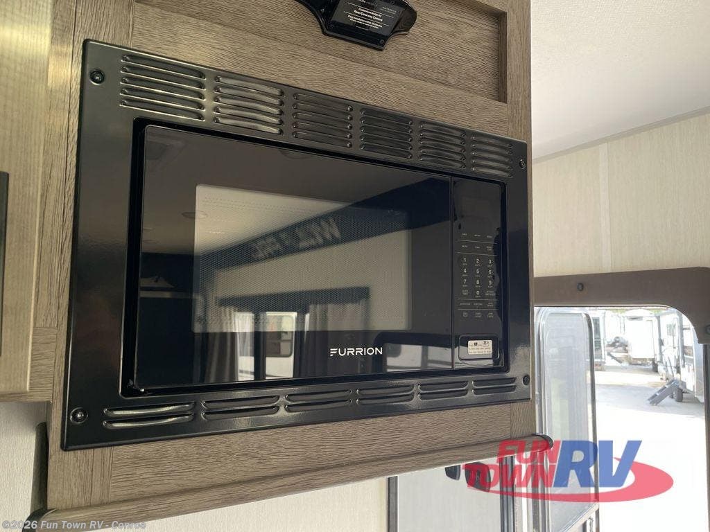 If you've been dreaming of camping with friends and family, take a look at this fifth wheel that can sleep nine people each night. The little ones will spend their time in the private bunkhouse when they're not outside riding their bikes. The half bath includes its own exterior entry door so your guests won't drag dirt through the whole trailer just to use the restroom, and the second entry door conveniently leads into the main living area. Here, you can relax on the booth dinette and tri-fold sofa within the large slide out, and if you're wanting even more comfort, just choose the optional power theatre seats in place of the tri-fold sofa. You will find all the appliances indoors to prepare meals each day, plus there is an exterior kitchen that will be perfect when frying fish or bacon!