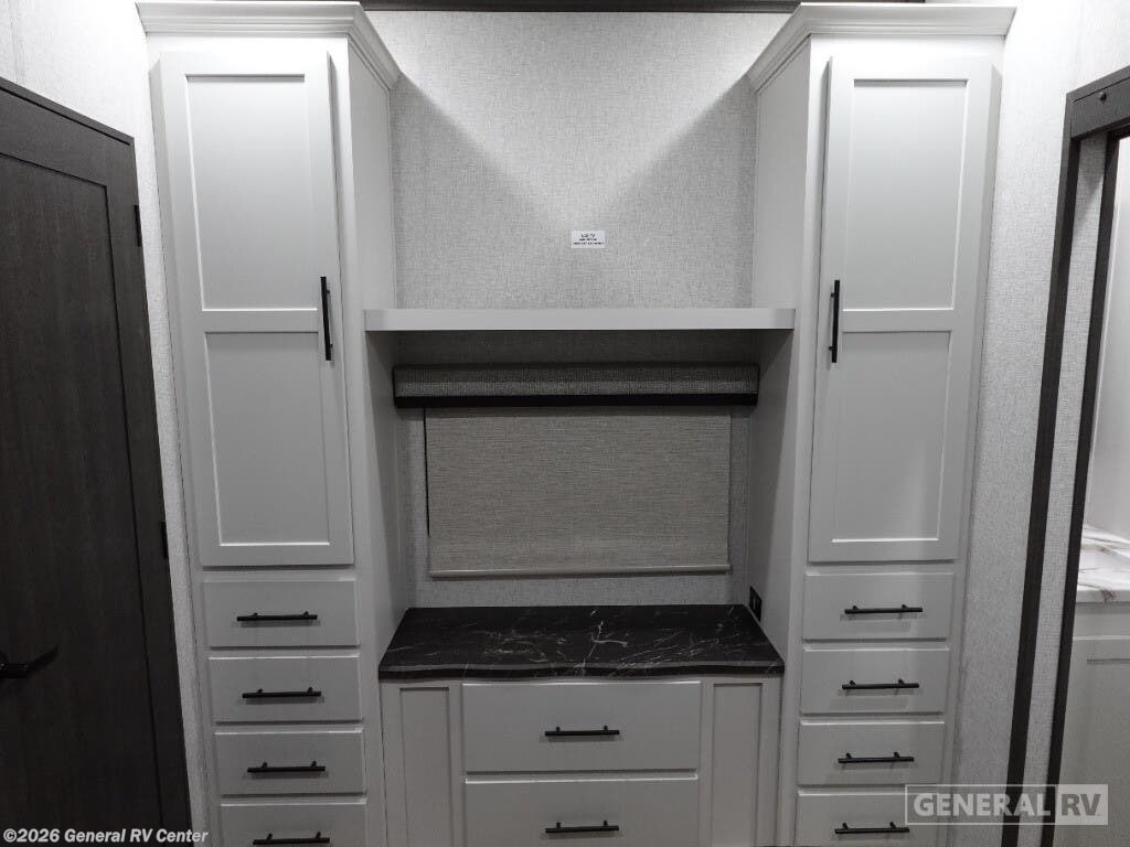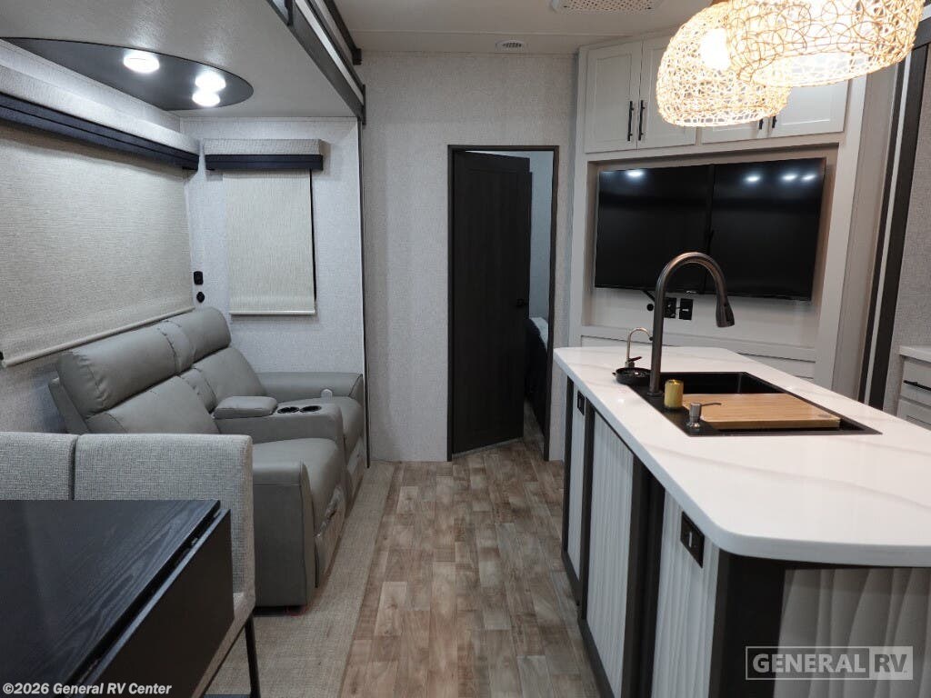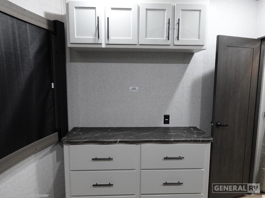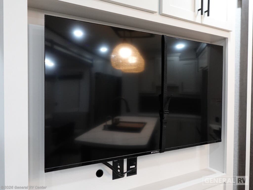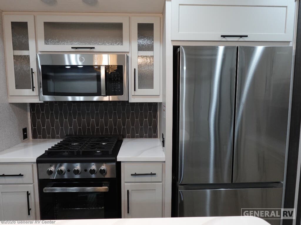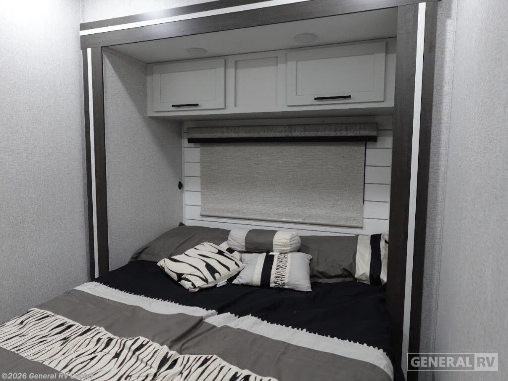 Experience the ultimate in luxury and comfort with the 2025 Crossroads Hampton 378DBB. This exceptional destination trailer is designed for those who appreciate the finer things in life while exploring the great outdoors. With a length of nearly 41 feet, this spacious RV offers a homey atmosphere with two inviting queen bedrooms, ensuring a restful night's sleep. The center kitchen is a chef's dream, equipped with a full-size electric refrigerator and a four-burner cooktop, making meal preparation a delightful experience. Enjoy your culinary creations at the free-standing table and chairs, or relax in the plush theater seating as you take in the panoramic views through large windows. The 378DBB's thoughtful layout includes a center living area and two bathrooms, providing convenience and privacy for all. The rear and center baths feature modern plastic and glass showers, perfect for refreshing after a day of adventure. With ample storage throughout, including wardrobes and closets, you'll have plenty of space to keep your belongings organized. The RV is also prepped for a washer and dryer, adding to its residential appeal. Whether you're lounging under the 13 ft. powered retractable awning or enjoying the cozy interior, this Crossroads Hampton model promises an unparalleled RVing experience. For more details, visit your nearest General RV dealership today!