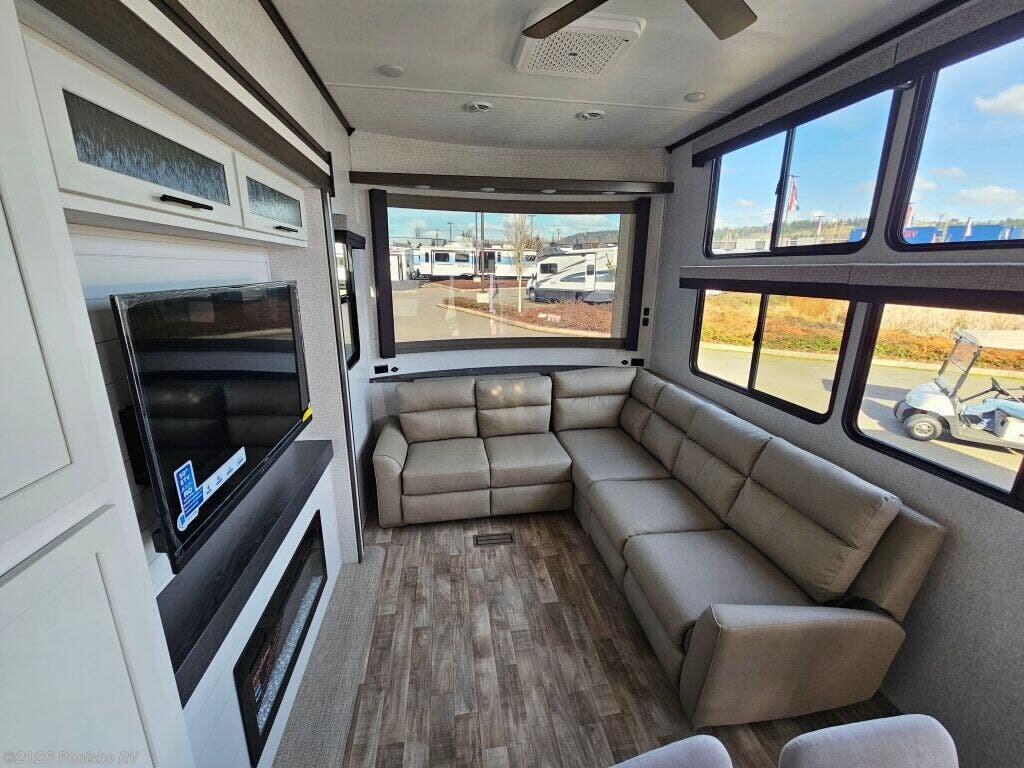 Experience the ultimate in luxury travel with the 2025 Crossroads Hampton HP395BAM. This expansive fifth wheel measures an impressive 42.11 feet, making it perfect for families or groups looking to explore the great outdoors while enjoying the comforts of home. With a new condition rating, this RV is in pristine shape and ready for your next adventure. It offers a sleeping capacity of five, ensuring everyone has a cozy spot to rest after a day of exploration. The living area is designed for comfort and flexibility, featuring three slide-outs that create additional space for relaxation and communal activities. Convenience is key with the included front and rear power leveling jacks, making setup a breeze at your campground or wherever your travels take you. The single awning provides ample outdoor shade for lounging on those sunny days. Weighing 12,168 pounds with a gross vehicle weight rating of 15,000 pounds, this RV is robust yet manageable, with a hitch weight of 1,482 pounds for towing. As a family-owned, award-winning local RV dealer with multiple locations in Sumner, Everett, Kent, and Mt. Vernon Washington, Poulsbo RV is here to help you find the perfect RV. Stock#: S762, VIN: 4YDTHPU29S9330208.