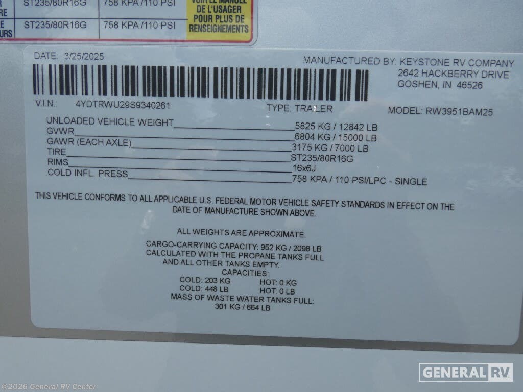 2025 CrossRoads Redwood Regency 3951BAM Specifications