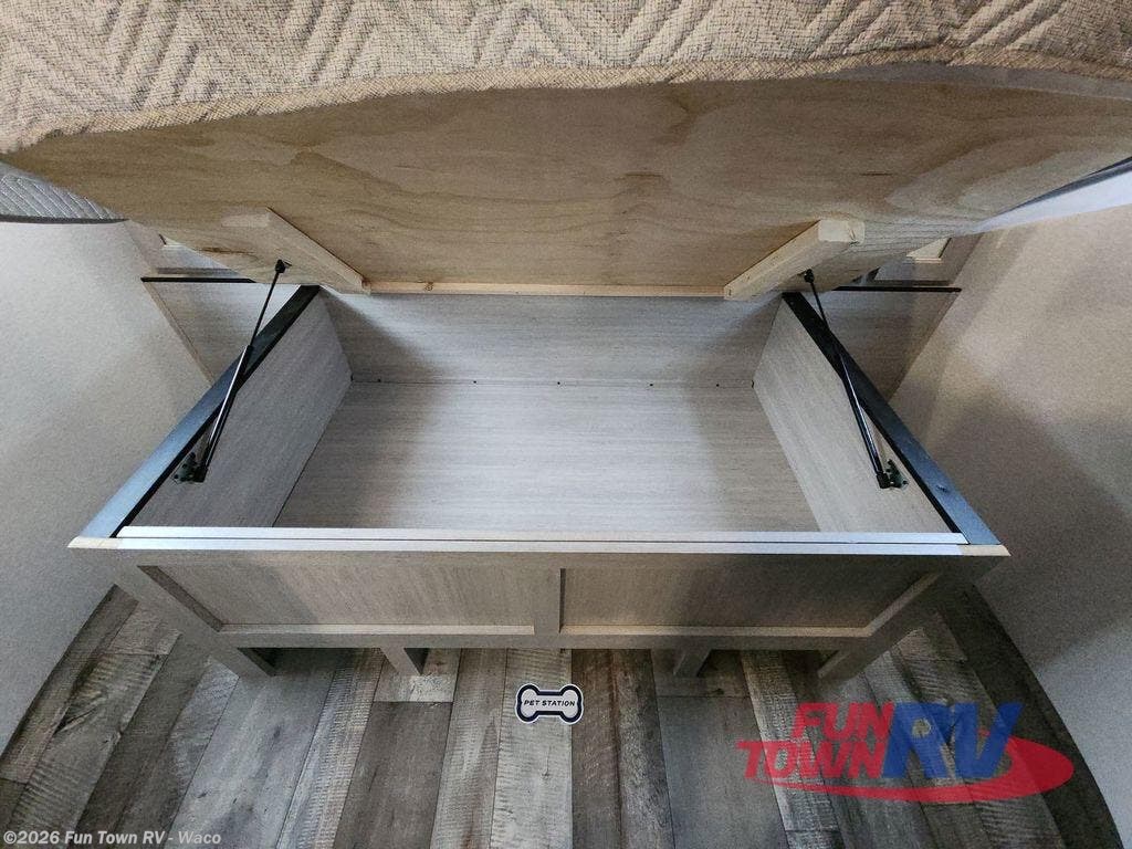 With any Sunset Trailer travel trailer by CrossRoads RV, you will enjoy comfort at every turn! The 5-sided aluminum structure, enclosed underbelly, and HyperDeck flooring provide a durable RV made to last. There is also a power awning with LED lights outdoors, a fiberglass front cap, and a docking station with battery disconnect for easy set-up. Each model includes solid surface kitchen countertops, porcelain toilets, roller shades, and hidden cabinet door hinges to name a few interior comforts!