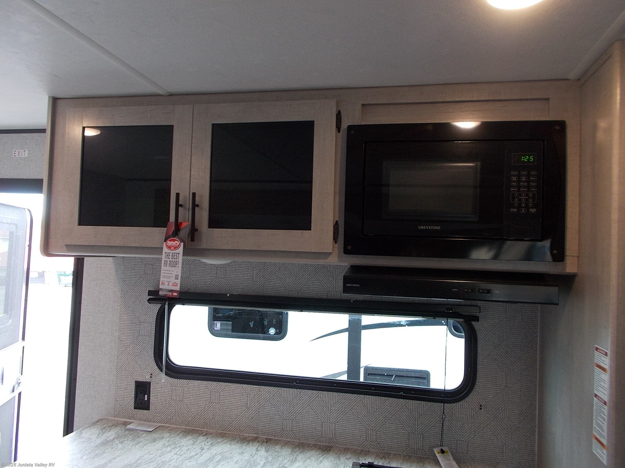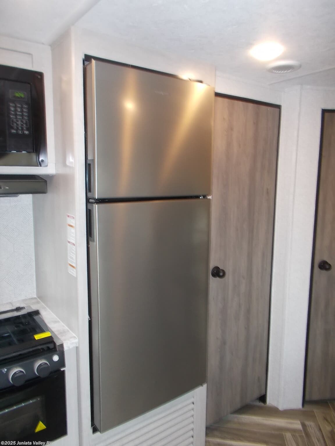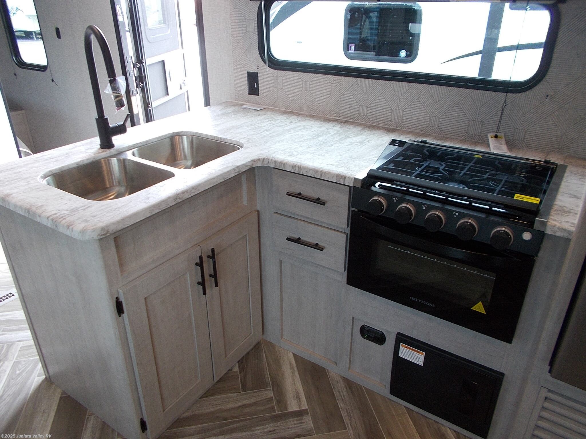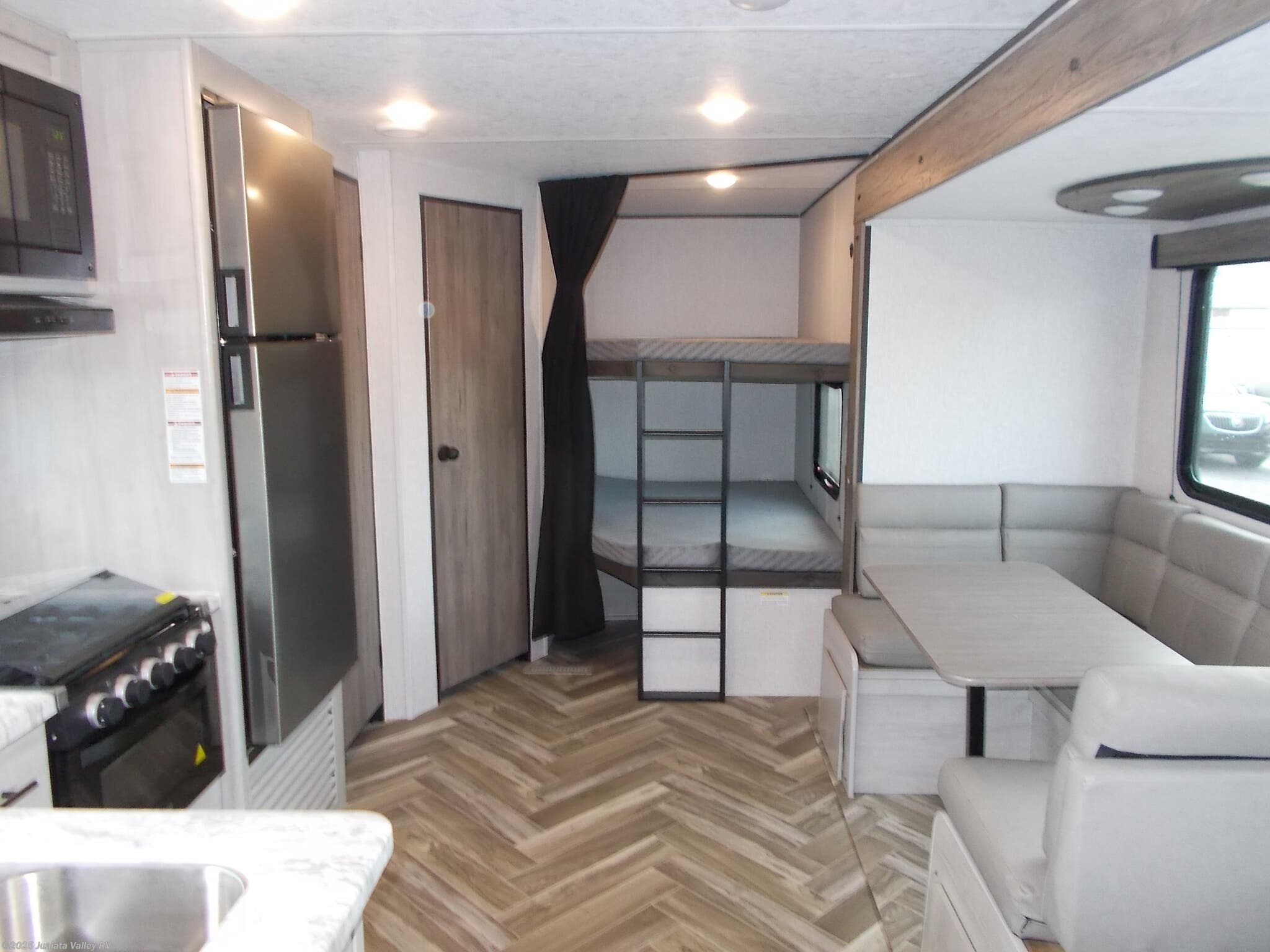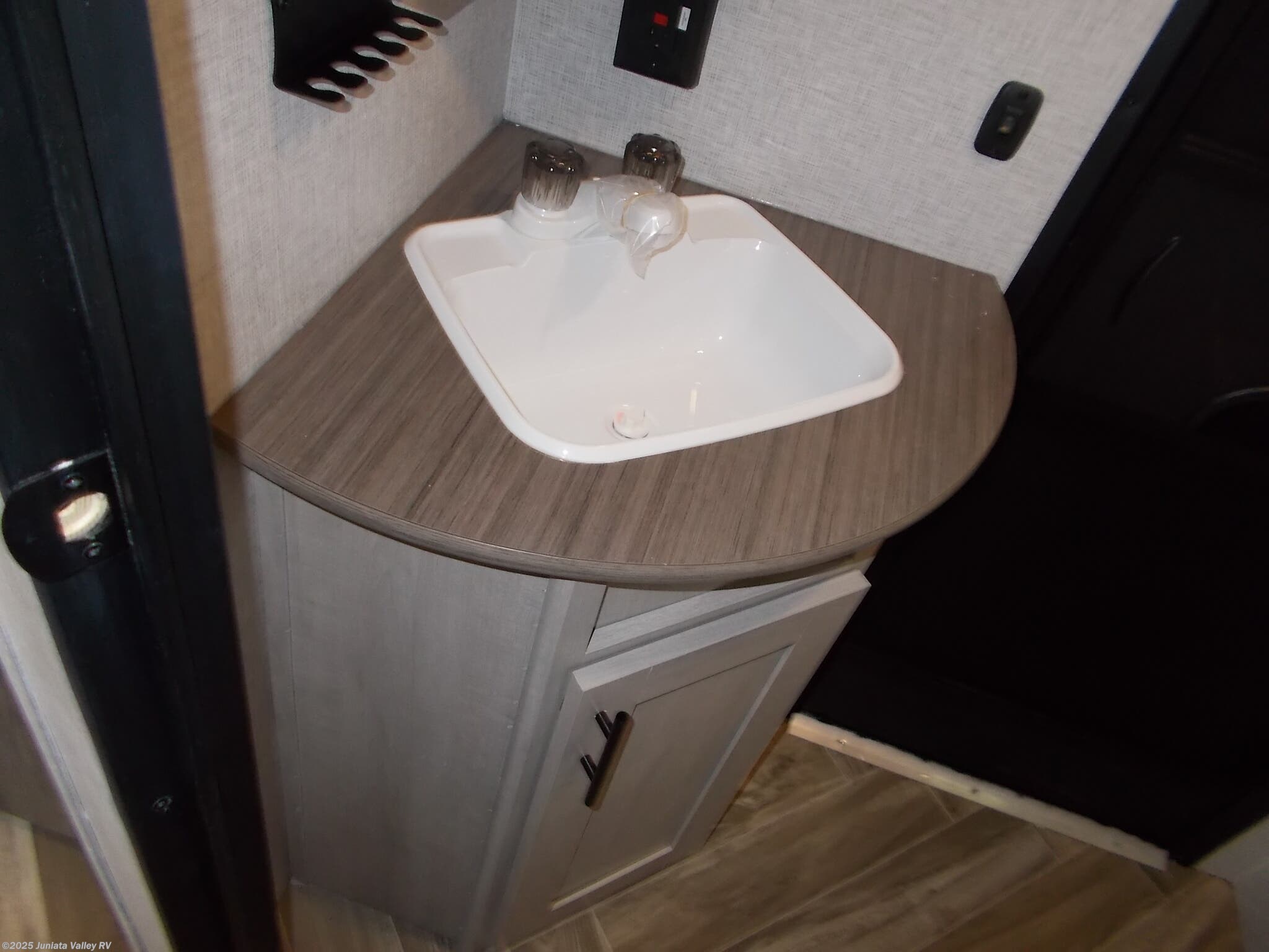 This 2025 CrossRoads Zinger 270BH is the perfect rig for your adventures and explorations. By owning this 2025 CrossRoads Zinger 270BH, you’re joining the CrossRoads family! The sleep capacity allows you to bring up to 6 along on your travels in this rig. Setup is a breeze thanks to one roomy slide. Cook up the best camping meals with appliances like the fridge, oven, stove. With the dinette bed, you’ve got the perfect place for family meal times. Comfort is important when RVing, and you’ll find just that with the sofa bed. You’ll never get too hot or too cold inside your rig thanks to the heating option. Go longer without filling up thanks to the 45 gallon fresh water tanks. Outside, you’ll find aluminum entrance steps, awning, black tank flush, detachable power cord, diamond shield paint protection film, electric jack, enclosed underbelly, external shower, pass thru storage, power awning, power roof vent, screen door, skylight, slideout, spare tire kit, stabilizer jacks and tinted windows. Make sure kids don’t track mud inside with the outside shower. Store all the gear you need for your travels with the spacious pass-through storage underneath.