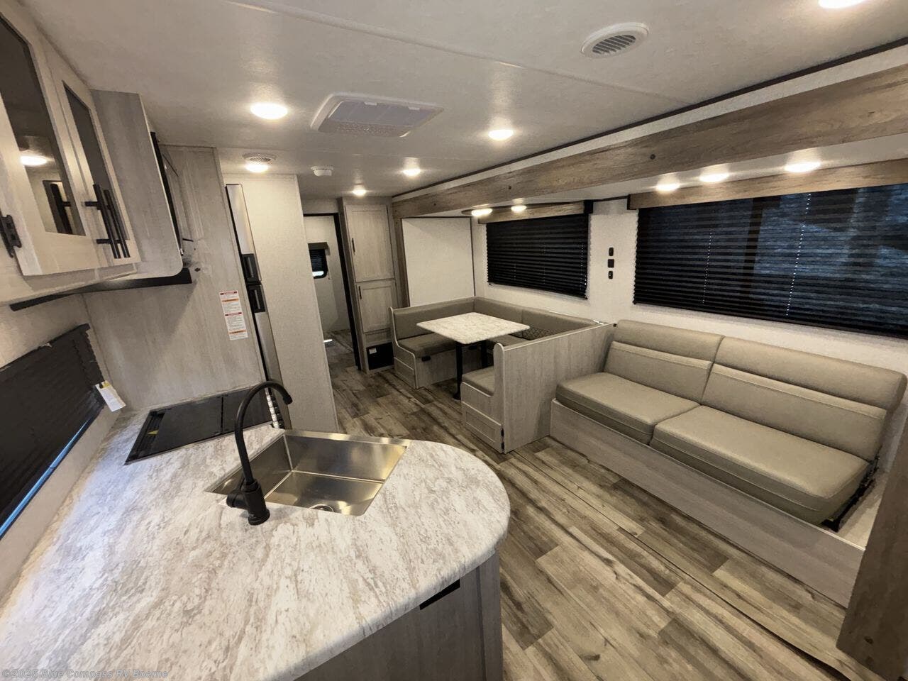 Lead your family to a great vacation getaway in any one of these CrossRoads RV Zinger travel trailers! They feature an aerodynamic front end, Keyed-Alike door locks, Secure Stance entry steps, and exterior speakers with LED accents. The interior of each model includes kitchen backsplash and pressed countertops, along with generous storage, designer valances, and LED lighting to keep your space well lit. You will also appreciate USB ports to keep your electronics charged up, and there is an AM/FM stereo with a Bluetooth soundbar to keep the party going!