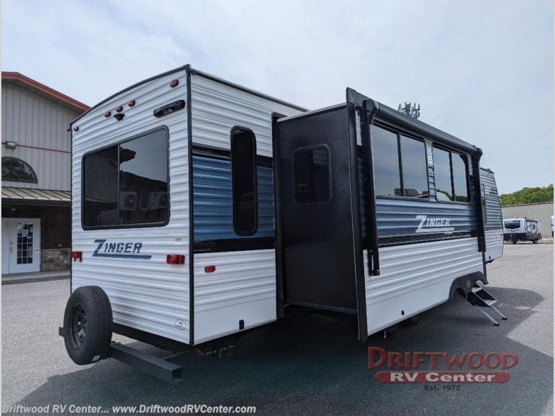 Lead your family to a great vacation getaway in any one of these CrossRoads RV Zinger travel trailers! They feature an aerodynamic front end, Keyed-Alike door locks, Secure Stance entry steps, and exterior speakers with LED accents. The interior of each model includes kitchen backsplash and pressed countertops, along with generous storage, designer valances, and LED lighting to keep your space well lit. You will also appreciate USB ports to keep your electronics charged up, and there is an AM/FM stereo with a Bluetooth soundbar to keep the party going!