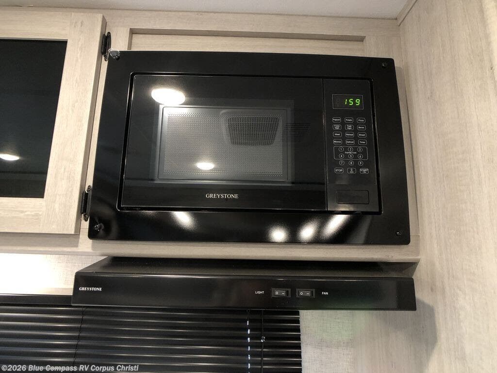 Pack your bags and invite your friends to tag along in this travel trailer! The master suite has an RV queen bed slide across from a dresser next to a wardrobe and it's own rear full bathroom with a 30" x 36" shower. The front private bedroom has a king bed slide across from a dresser and a front wardrobe, washer and dryer prep, plus an entrance into the dual entry bathroom which has a 34" radius shower. Both bedrooms have an entrance/exit door to the unit, and the 60" x 72" patio door leads directly into the kitchen/living area. The chef can prepare delicious meals with the three burner cooktop then you can enjoy them at the 38" booth dinette next to a 60" jackknife sofa for a relaxing evening by the 50" TV at the entertainment center.