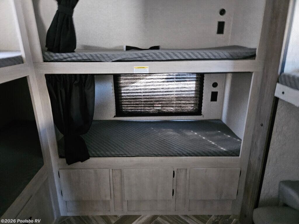 Discover the freedom and adventure waiting for you with the 2025 Crossroads Zinger ZR328SB, an exceptional travel trailer tailored for families and avid campers alike. This spacious model stretches 36.42 feet in length and boasts a robust Gross Vehicle Weight Rating (GVWR) of 9,740 pounds, which allows for versatile towing options. This new RV features innovative front and rear power leveling jacks, ensuring a quick and easy setup at your campsite, allowing you to spend less time preparing and more time enjoying the great outdoors. This travel trailer is designed to comfortably accommodate up to 11 people, making it an ideal choice for a fun-filled family getaway or a gathering with friends. The thoughtful bunkhouse design provides additional sleeping space that is perfect for children or guests, adding a cozy touch to your travels. The Zinger ZR328SB showcases two slide-outs that expand the living area, creating an inviting atmosphere for relaxation and connection after a day of exploration. It is equipped with a well-appointed kitchen, allowing for delicious home-cooked meals on the road, complemented by a lounge area perfect for unwinding. Additionally, the outdoor awning offers shade and comfort, making it easy to enjoy evenings under the stars. With convenience features throughout, this trailer is designed to ensure your journeys are as enjoyable as possible. Embrace the spirit of adventure with the 2025 Crossroads Zinger ZR328SB, where every trip becomes a cherished memory. Stock#: E5864, VIN: 4YDTZRR24S8370624.