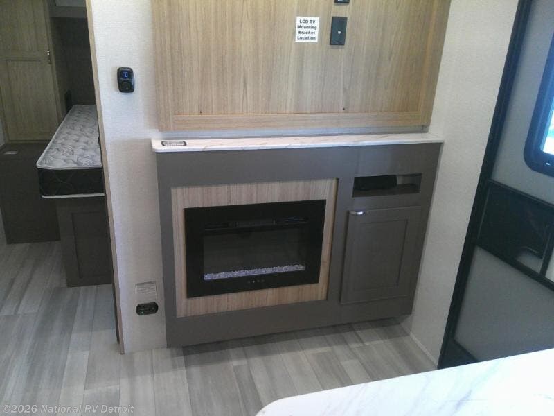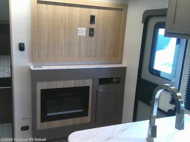 Sleeping for five or six depending on size makes this a great family trailer! A large slide in the combined kitchen and living room allows plenty of space for everyone to easily move around. Enjoy relaxing on the Lux Lounge which can also double as sleeping space for family or friends. There is also a 42" x 76" booth dinette for meals and games which can also be transformed into sleeping if needed. Both seating spaces can easily view the fireplace while relaxing inside. The queen bed in the front private bedroom will provide a great night's rest after adventuring all day, and in the morning you can create a hearty breakfast using the three burner cooktop. A spacious rear corner bath provides a radius shower, toilet, and sink so everyone can feel their best. On the outside, a full pass-through compartment features ample storage for camp chairs, an outdoor rug for under the 18' awning, and so much more!