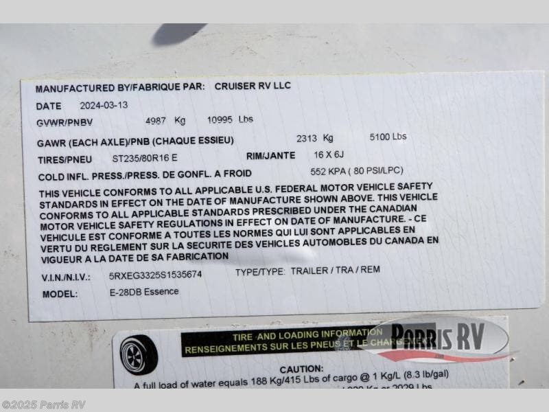 Request More Info on this 2025 Cruiser RV Essence E-28DB Offered for sale by Parris RV