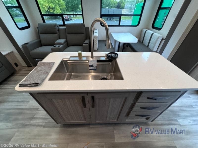 Every one of these Cruiser Essence fifth wheels offer an unrivaled experience on the road! Their sturdy construction consists of Azdel Onboard composite panels, a five-sided aluminum super structure, and tongue and groove plywood throughout, plus a painted fiberglass front cap that will turn heads at the campsite. Their interiors have a keen sense of comfort and convenience with features like a residential workstation sink with waterfall faucet, an air fryer oven, and solid surface kitchen countertops. You will enjoy having hot water quick for your shower in the upgraded shower surround thanks to the on demand water heater. The tinted G20 windows give you privacy from the outdoors while offering you a view of your beautiful scenery. Get your hands on one today!