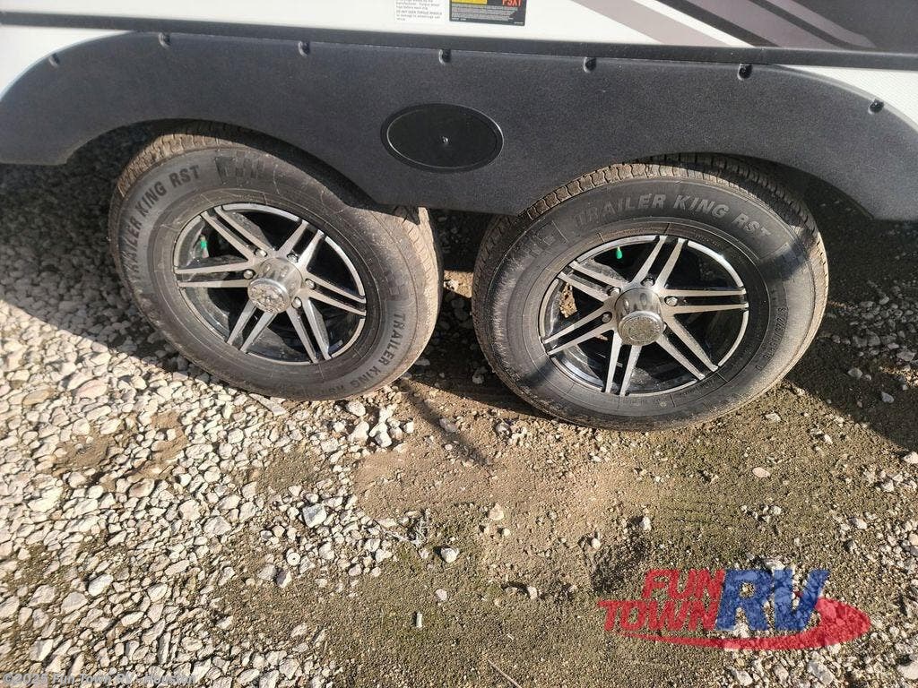 With any MPG travel trailer or toy hauler by Cruiser you will find Azdel composite laminated walls, and a high gloss fiberglass front cap with LED lighting for a sleek look. There are seamless kitchen countertops and plywood flooring that will be easy to clean, plus residential hardwood cabinets with hidden hinges for a more at-home feel. The slam latch baggage doors with magnetic latches will make loading up easier than ever, plus the pass-through storage includes motion sensing LED lights you are sure to appreciate. Each model also includes multiple charging stations with 12v and USB ports, a four speaker soundbar system to listen to your playlists, and a dual ducted A/C to keep you cool during those hot summer months!