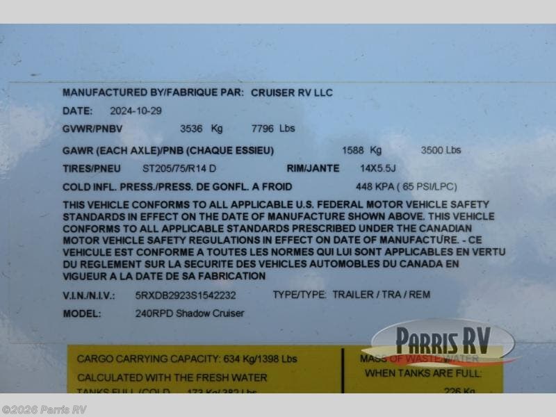 Request More Info on this 2025 Cruiser RV Shadow Cruiser 240RPD Offered for sale by Parris RV