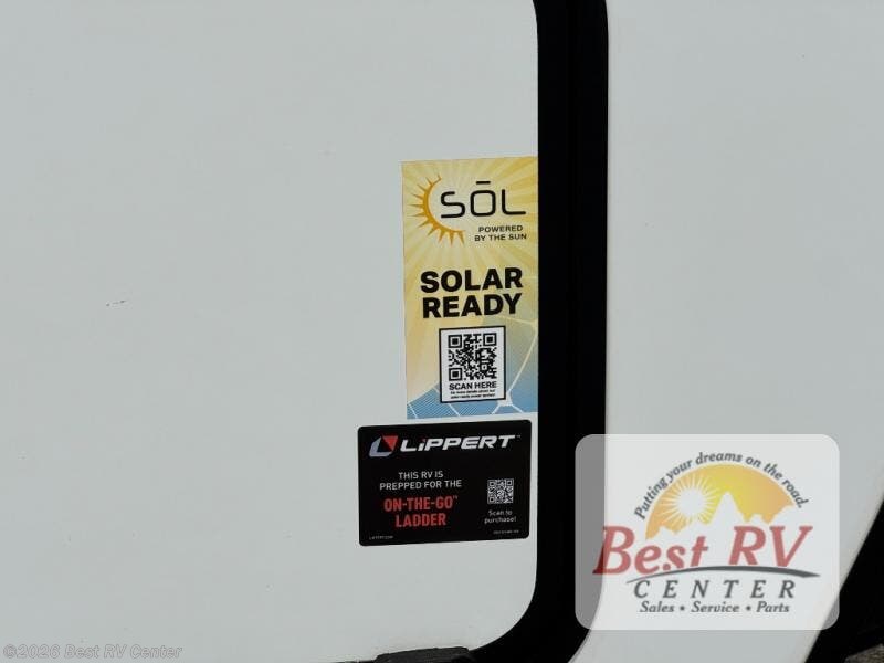 - Exterior Convenience Package: Azdel Backed Laminated Walls, 5-Sided Aluminum Super Structure, Radial Tires on Aluminum Rims, Solid Entry Steps, 30" Wide Primary Entry Door, Black Tank Flush, Tinted Safety Glass Windows, LED Pass Thru Storage Lighting, Telescoping Grab Handle, TPO Walkable Roof, On-the-Go Ladder Prep, Easy Lube Hubs, 3,500 lb - 4,400 lb axles, Matching Colored Fender Skirt, Detachable Power Cord, Outside Spray-Port with Hose & Sprayer, Extended Range TV Antenna with Wi-Fi Prep, Cable & Satellite Prep, Keyed Alike Exterior Door Locks