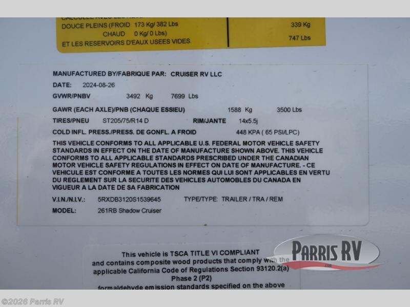 Request More Info on this 2025 Cruiser RV Shadow Cruiser 261RBS Offered for sale by Parris RV