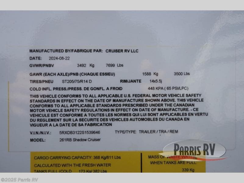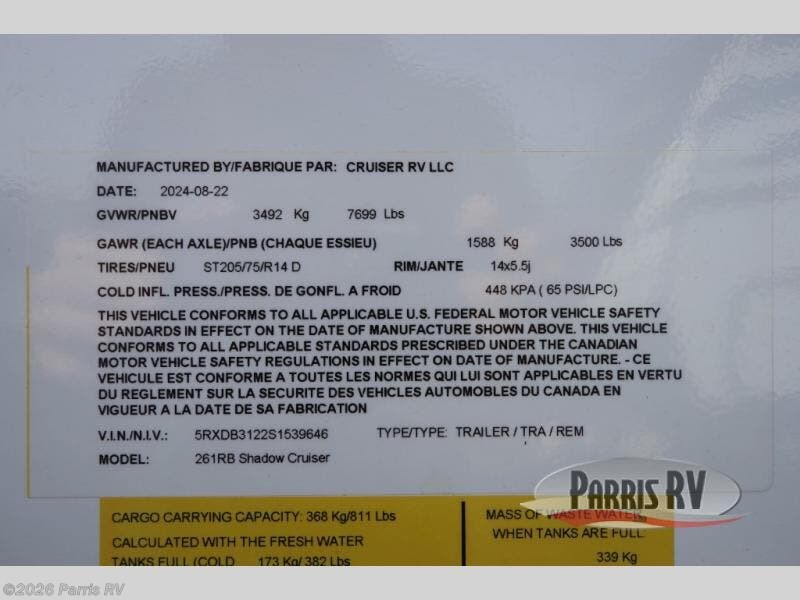 Request More Info on this 2025 Cruiser RV Shadow Cruiser 261RBS Offered for sale by Parris RV