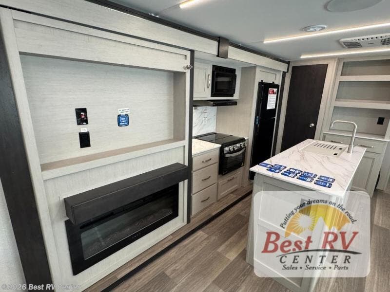 - Interior Comfort Package: Fireplace(Varies By Model), Seamless Edge Countertops, LED Batton Strip lighting w/Dimmer,