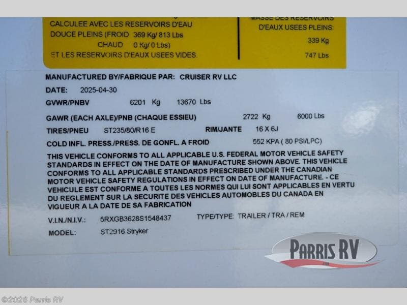 Request More Info on this 2025 Cruiser RV Stryker ST2916 Offered for sale by Parris RV