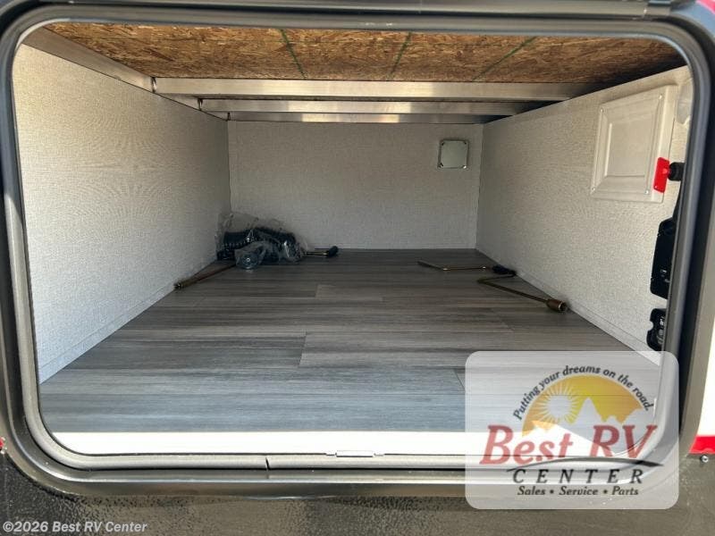 - Toy Hauler Enthusiast Package: 16" Goodyear Radial Tires on Aluminum Rims-looking at wheel & tire choices, HD Axles w/12" Brakes, EZ-Flex w/Wet Bolt Kit, Black Tank Flush, Slam Latch Doors, Front Fiberglass Cap, LED Lighting, Cargo/Reverse Lights, Generator Prep w/30 Gallon Fuel Station, Exterior TV Mounting Backer, Telescoping Grab Handle, Dual 20# LP Tanks, LED Under Glow Lighting Package, 102" Widebody Construction, 100+ Gallon Freshwater Holding Capacity, LED Exterior TV (STG3212 & STG3313 Only), TPO Walkable Roof, 5,000 lb Capacity Floor Tie-Downs, Beaver Tail Floor
