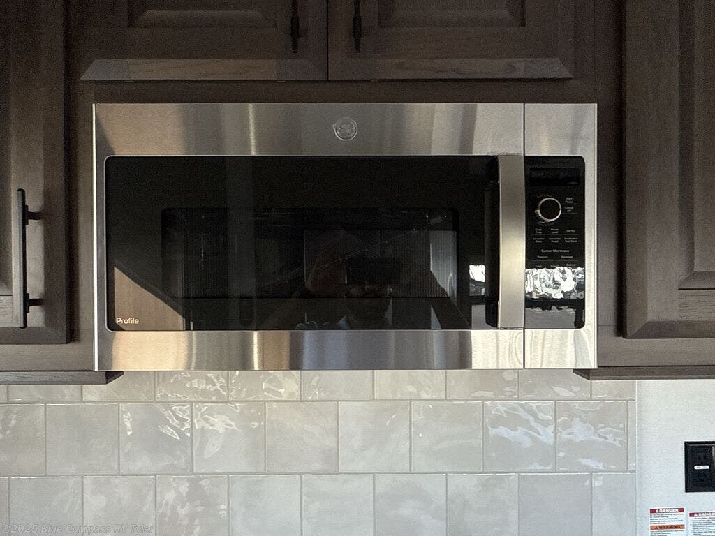 Imagine your own rear gourmet kitchen with high polished solid surface countertops, a stainless steel residential dishwasher, a convection/microwave, and a residential stainless steel French door refrigerator. The lighted pantry and kitchen/bathroom toe kicks are an added luxury you will surely appreciate especially at night. The separate living area offers dual residential recliners to relax and unwind, a fireplace, and two sofas. There is a handy half bathroom for your guests only steps away, and you can enjoy your own full front bath after walking through your master bedroom with a king bed. The spacious bathroom offers a large bath sink and a walk-in closet to keep all your belongings organized.