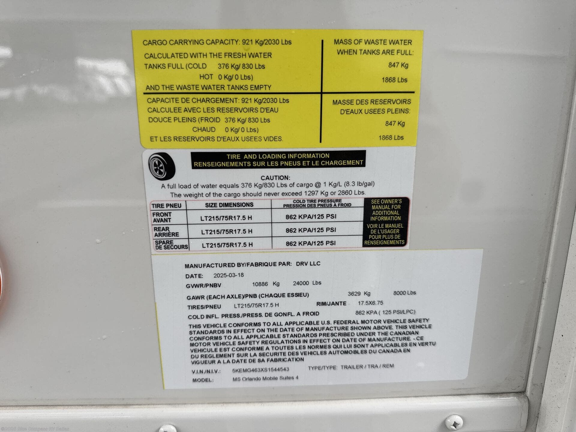 2025 DRV Mobile Suites MS Orlando Specifications