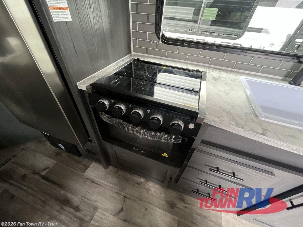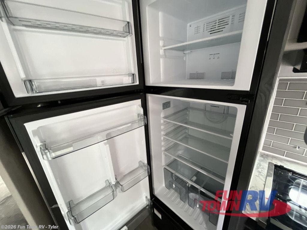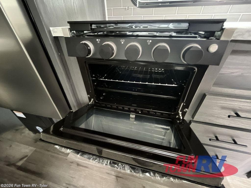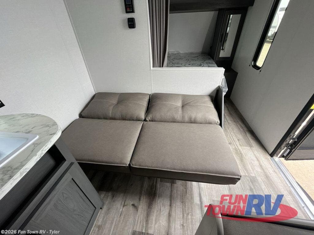 Enjoy privacy in the front bedroom when you close the curtains. You can sleep on your own residential queen bed, and there are two wardrobes to stow away your clothes. Your family and friends can sleep on the double-size bunks in the rear next to the full bathroom with a shower, and the booth dinette as well as the sofa provide extra sleeping space. The 10 cu. ft. 12V refrigerator will hold your cold items, and you can cook using the range top, and keep everything clean using the galley sink with a high rise faucet. And the overhead cabinets will hold your dishes, snacks and such.