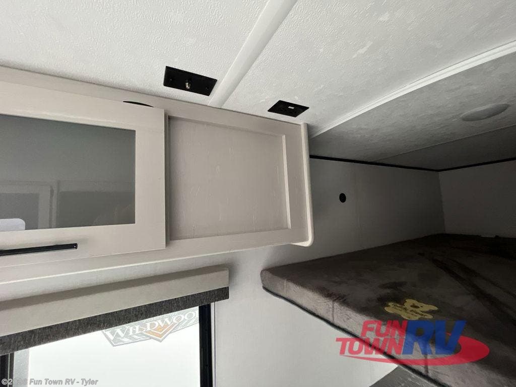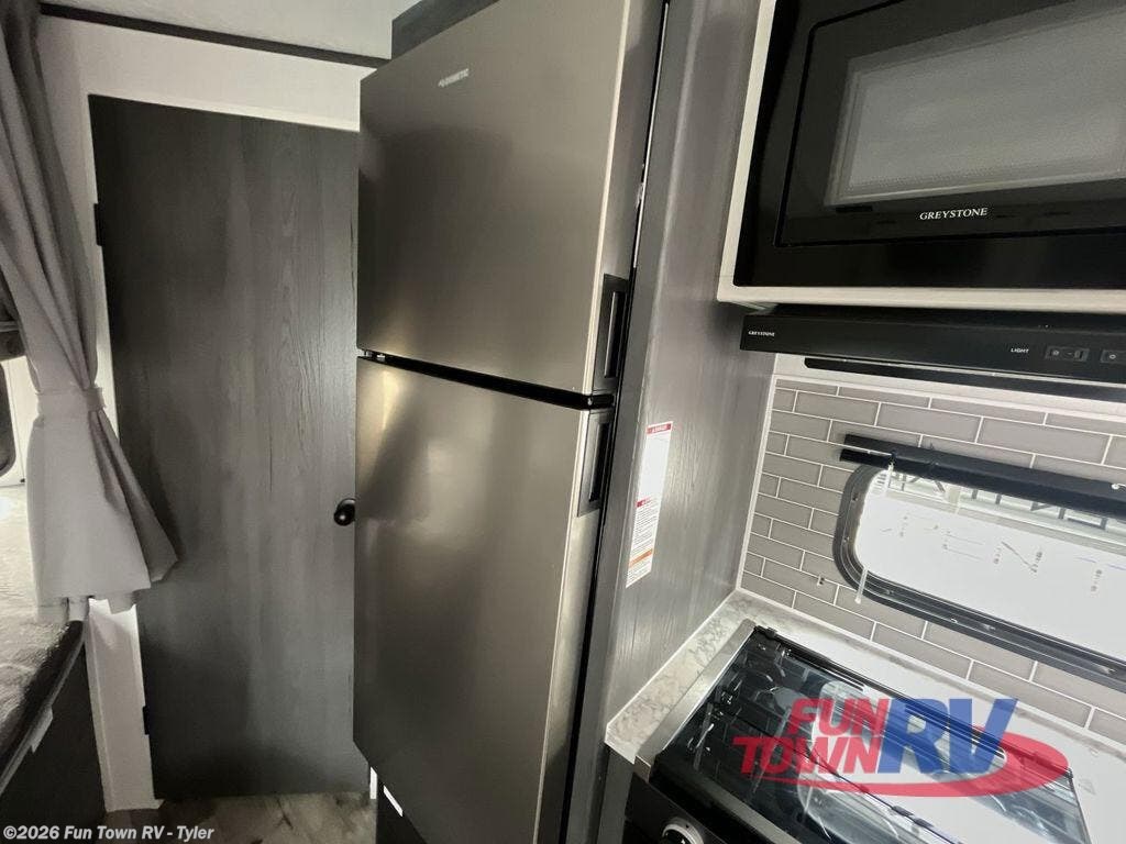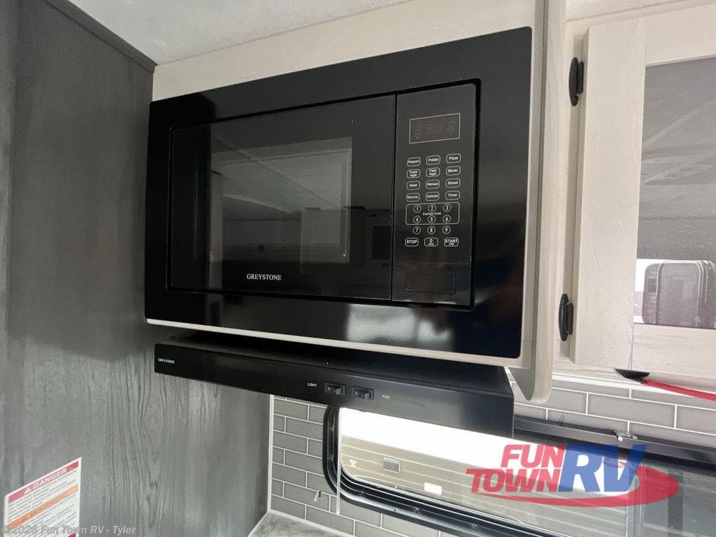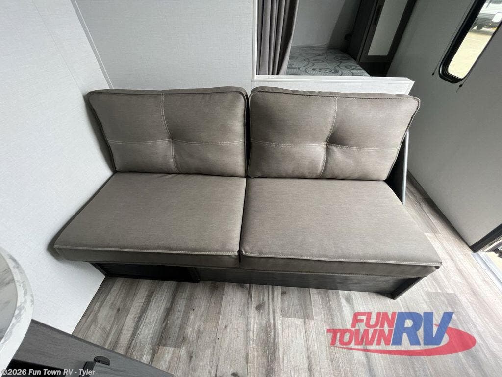 Enjoy privacy in the front bedroom when you close the curtains. You can sleep on your own residential queen bed, and there are two wardrobes to stow away your clothes. Your family and friends can sleep on the double-size bunks in the rear next to the full bathroom with a shower, and the booth dinette as well as the sofa provide extra sleeping space. The 10 cu. ft. 12V refrigerator will hold your cold items, and you can cook using the range top, and keep everything clean using the galley sink with a high rise faucet. And the overhead cabinets will hold your dishes, snacks and such.