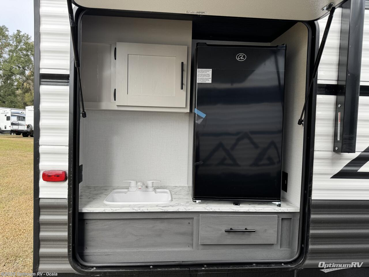 This travel trailer is one your whole crew will love! There is a rear private bunkhouse with double-size bunks for the little ones, a front private bedroom for you, and a booth dinette and jackknife sofa for even more sleeping space! The chef has their choice to cook indoors on the three burner range and microwave oven, or head outdoors to cook on the outdoor kitchen! The full bath will let everyone clean up each day, and the fireplace and large slide out will make your space feel more like home. And don't overlook the pass-through storage and 16' power awning with LED lights!