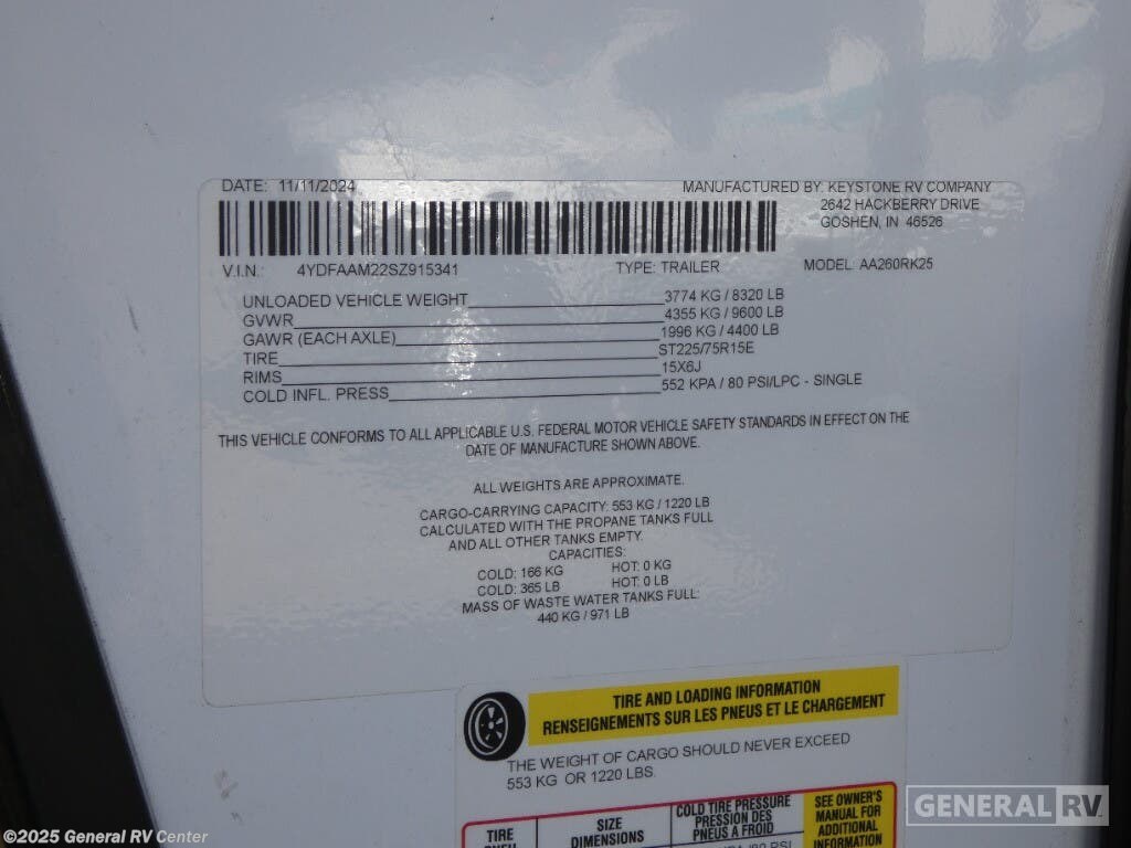 2025 Dutchmen Astoria 260RK Specifications