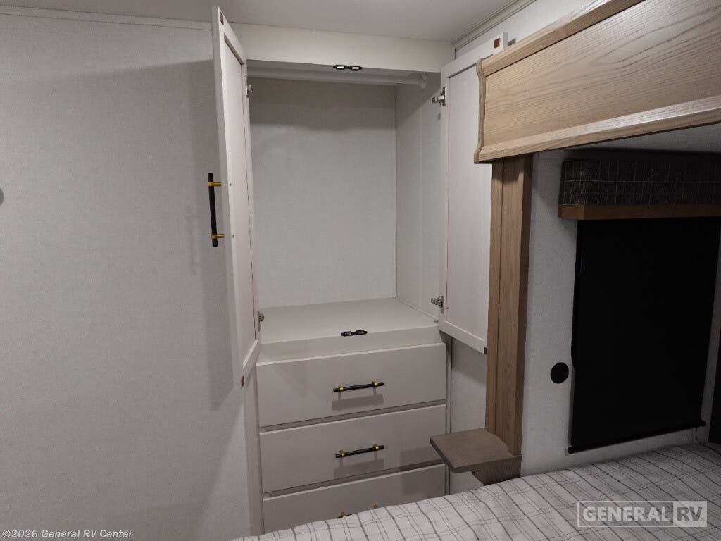 Experience the perfect blend of comfort and style with the 2025 Dutchmen Astoria 260RK. This travel trailer is designed for those who crave adventure without sacrificing luxury. At just over 30 feet, it offers a spacious and inviting layout that includes a cozy rear kitchen, perfect for culinary enthusiasts. The full-size refrigerator and three-burner cooktop make meal preparation a breeze, while the ample pantry space ensures you have all the essentials on hand. The center living area is a haven for relaxation, featuring plush theater seating and a café dinette, ideal for entertaining or unwinding after a day of exploration. The front bedroom boasts a luxurious king bed and a mounted TV, providing a private retreat for restful nights. With two slides, the interior feels open and airy, complemented by the natural light streaming through the skylight in the walk-in shower. This model is prepped for a washer and dryer, adding an extra layer of convenience for extended trips. Enjoy the great outdoors under the 18 ft. powered retractable awning, perfect for shaded relaxation. With a robust cargo capacity and ample storage, the Astoria 260RK is ready for any adventure you dream up. For more details, visit your nearest General RV dealership and start your journey today!