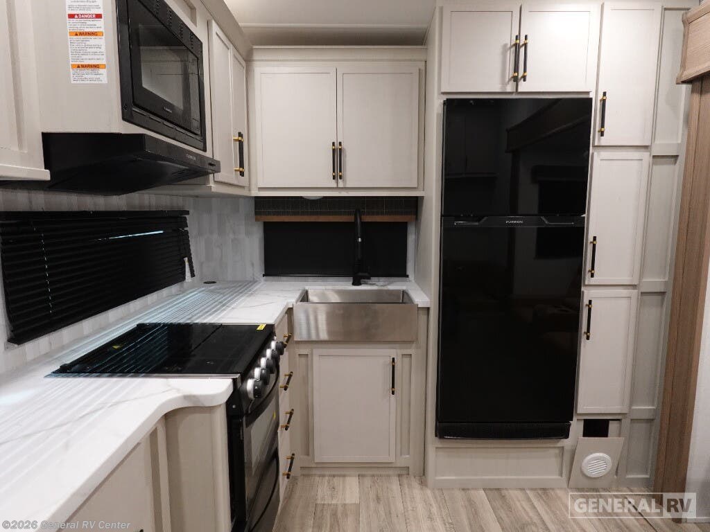 Experience the perfect blend of comfort and style with the 2025 Dutchmen Astoria 260RK. This travel trailer is designed for those who crave adventure without sacrificing luxury. At just over 30 feet, it offers a spacious and inviting layout that includes a cozy rear kitchen, perfect for culinary enthusiasts. The full-size refrigerator and three-burner cooktop make meal preparation a breeze, while the ample pantry space ensures you have all the essentials on hand. The center living area is a haven for relaxation, featuring plush theater seating and a café dinette, ideal for entertaining or unwinding after a day of exploration. The front bedroom boasts a luxurious king bed and a mounted TV, providing a private retreat for restful nights. With two slides, the interior feels open and airy, complemented by the natural light streaming through the skylight in the walk-in shower. This model is prepped for a washer and dryer, adding an extra layer of convenience for extended trips. Enjoy the great outdoors under the 18 ft. powered retractable awning, perfect for shaded relaxation. With a robust cargo capacity and ample storage, the Astoria 260RK is ready for any adventure you dream up. For more details, visit your nearest General RV dealership and start your journey today!