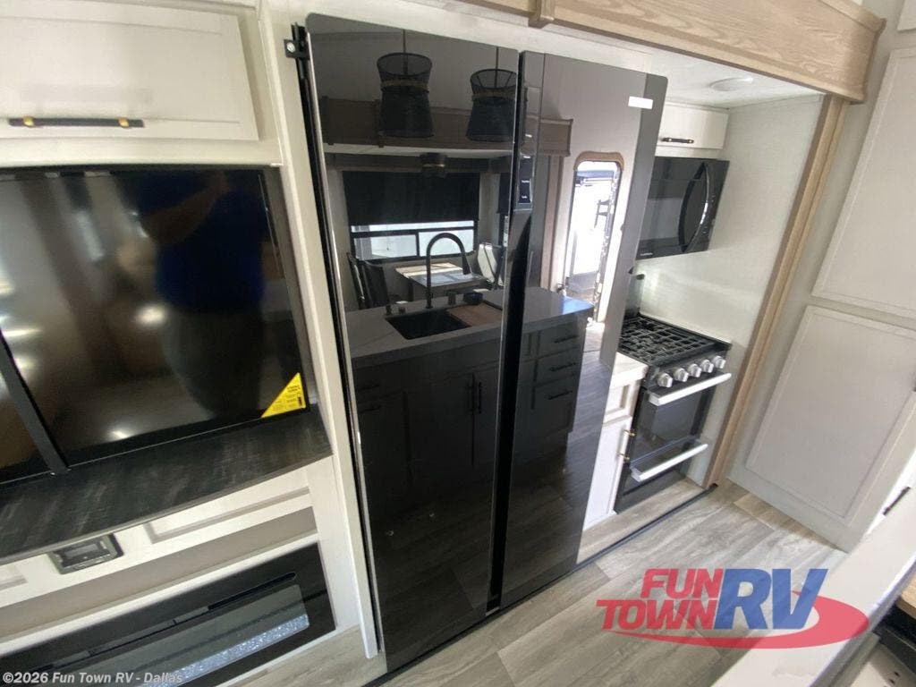 Each one of these Dutchmen RV Astoria Platinum fifth wheels feature a fiberglass exterior for added durability and an All Weather Thermal Package so you can camp all year long! There are also MorRyde Solid entry steps, slam latch baggage doors, and many more exterior conveniences. You'll enjoy a 200W solar panel for off-grid capabilities, an X1 back up camera for easy parking, and a power awning with LED lights for an inviting outdoor space. The interior is designed with bathroom backsplash, night shades throughout the living area, and Thomas Payne furniture collection. The on-demand tankless water heater will provide endless hot showers, and the dual ducted A/C will keep you cool all summer long.