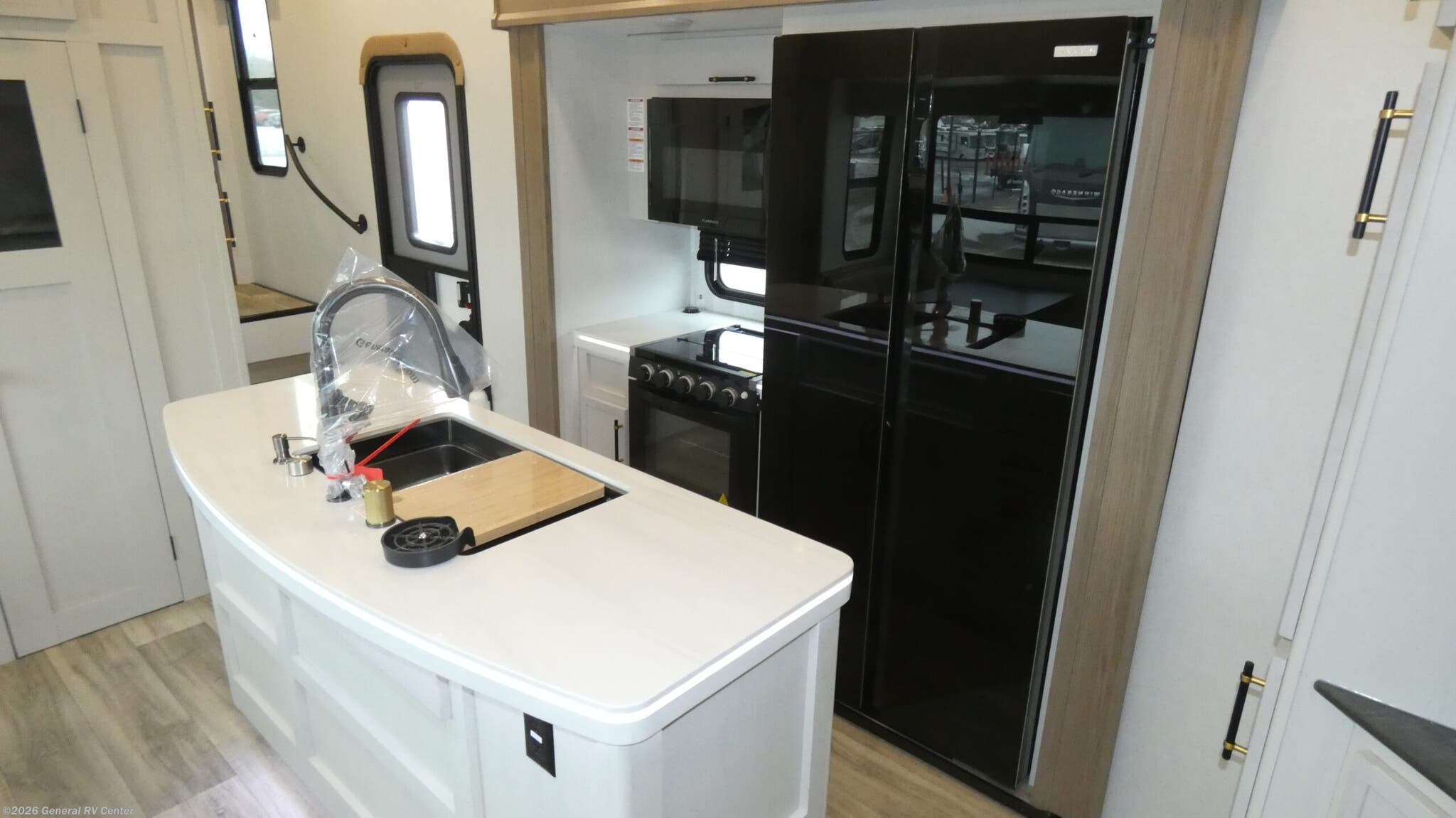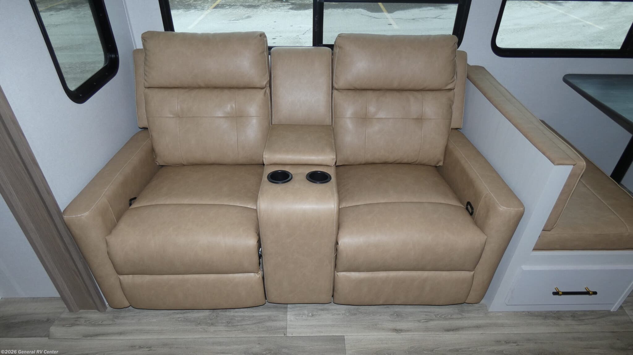 Discover the 2025 Dutchmen Astoria Platinum 3603LFP, where luxury meets practicality in a spacious design that accommodates up to eight guests. This impressive fifth wheel is crafted for comfort with a king-sized bed in the master suite and a cozy double bed in the loft area, offering restful retreats after a day of adventure. The center kitchen is a culinary delight, featuring a full-size electric refrigerator, a three-burner cooktop, and a farm-style sink, making meal preparation a breeze. The inviting living area, complete with theater seating and a booth dinette, is perfect for family gatherings or a relaxing evening indoors. The Astoria Platinum 3603LFP is as functional as it is stylish. With its three slides, the interior feels open and airy, while the dual awnings provide ample outdoor living space. The thoughtfully designed bathroom includes a walk-in shower with a skylight, ensuring a refreshing experience. This model is prepped for a washer and dryer, adding to its convenience for extended trips. With ample storage throughout, including pass-through storage and a pantry, you’ll have plenty of room for all your travel essentials. Ready to explore this exceptional RV further? Visit your nearest General RV dealership today!