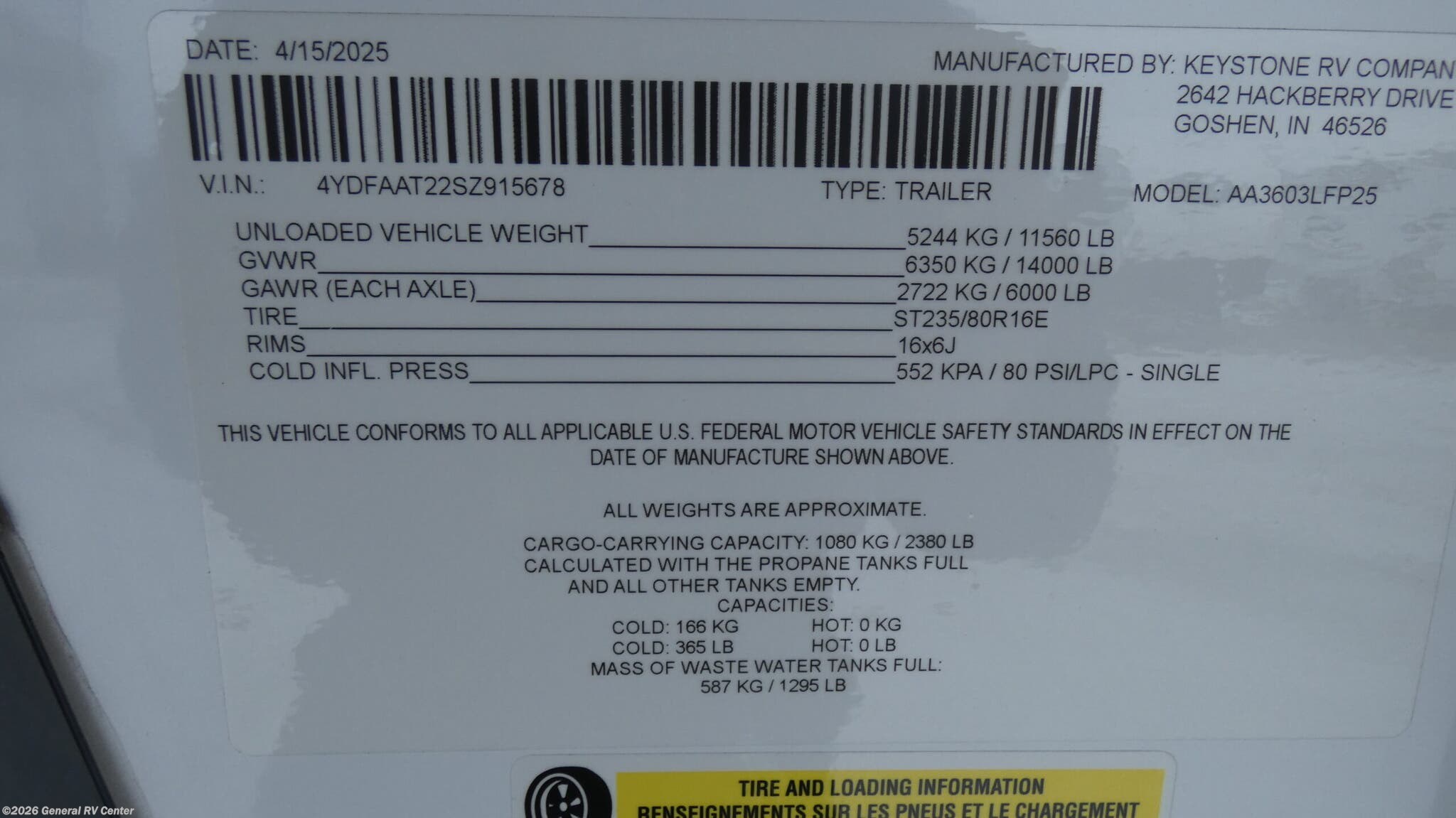 2025 Dutchmen Astoria 3603LFP Specifications