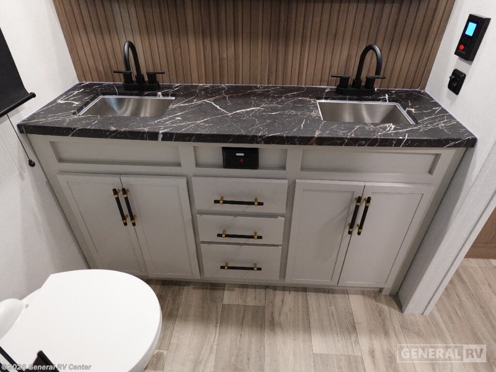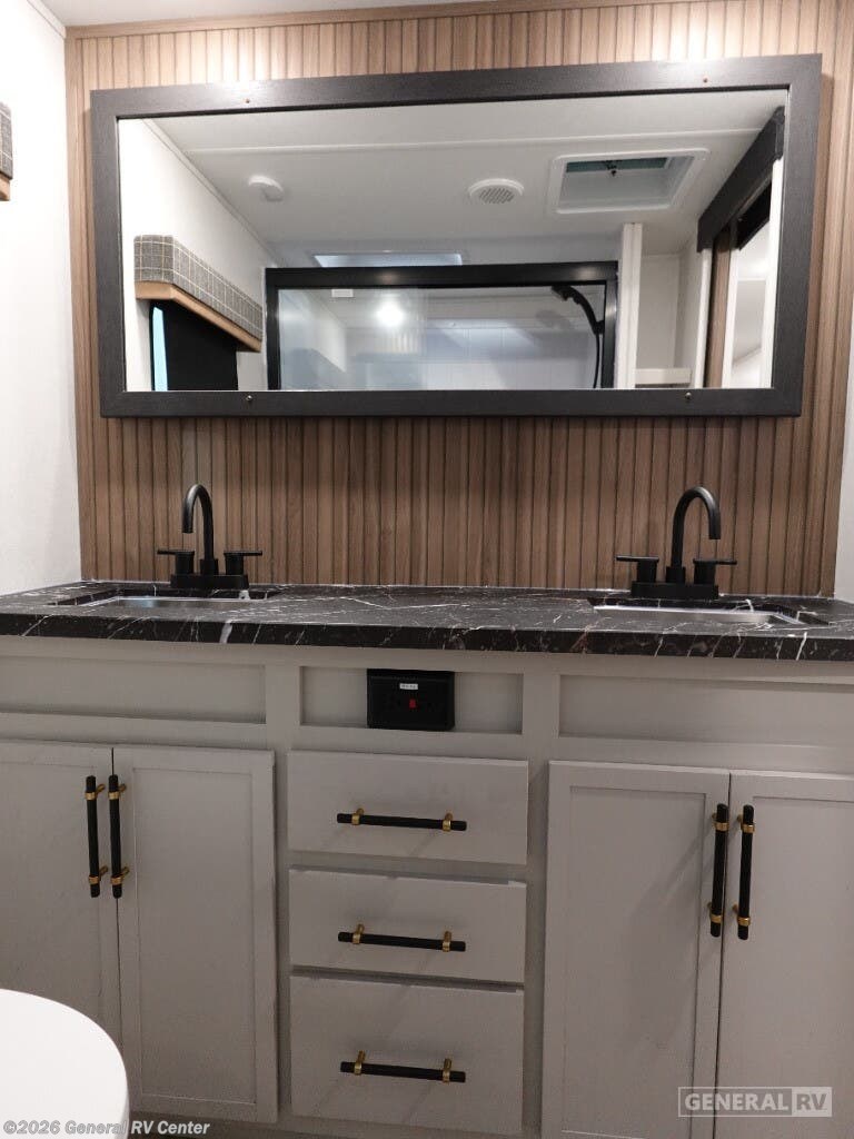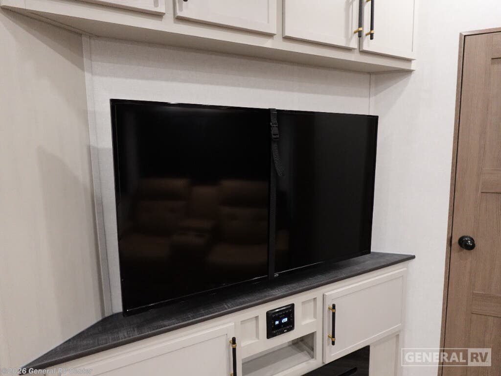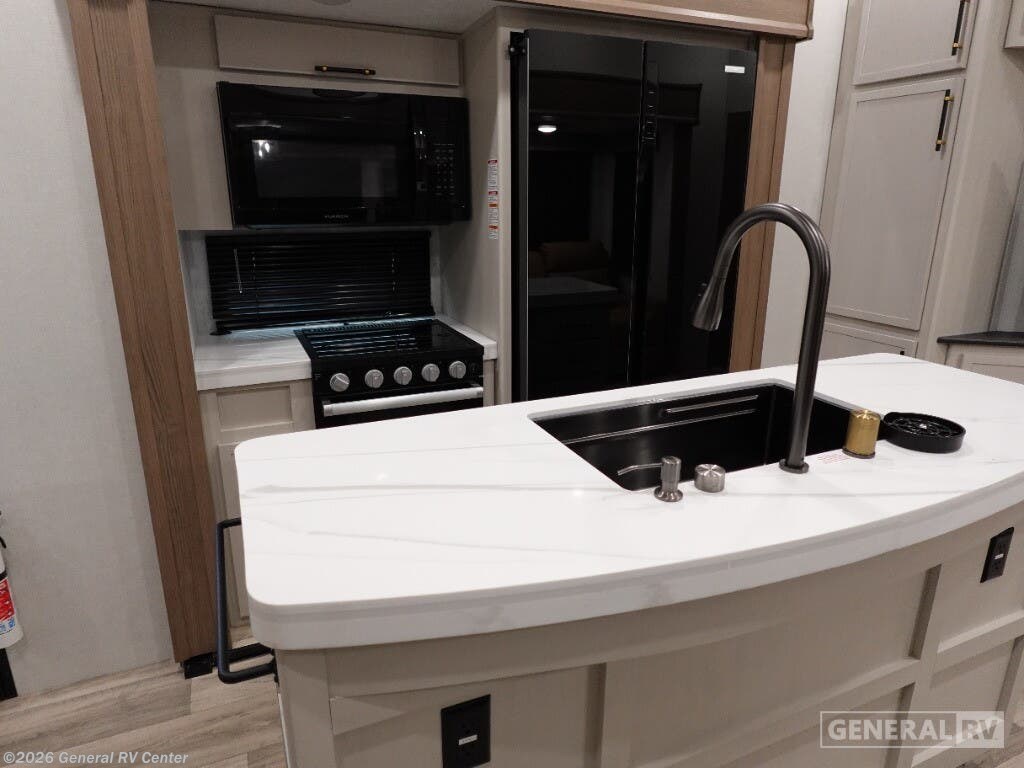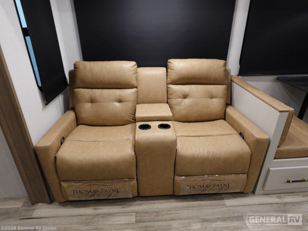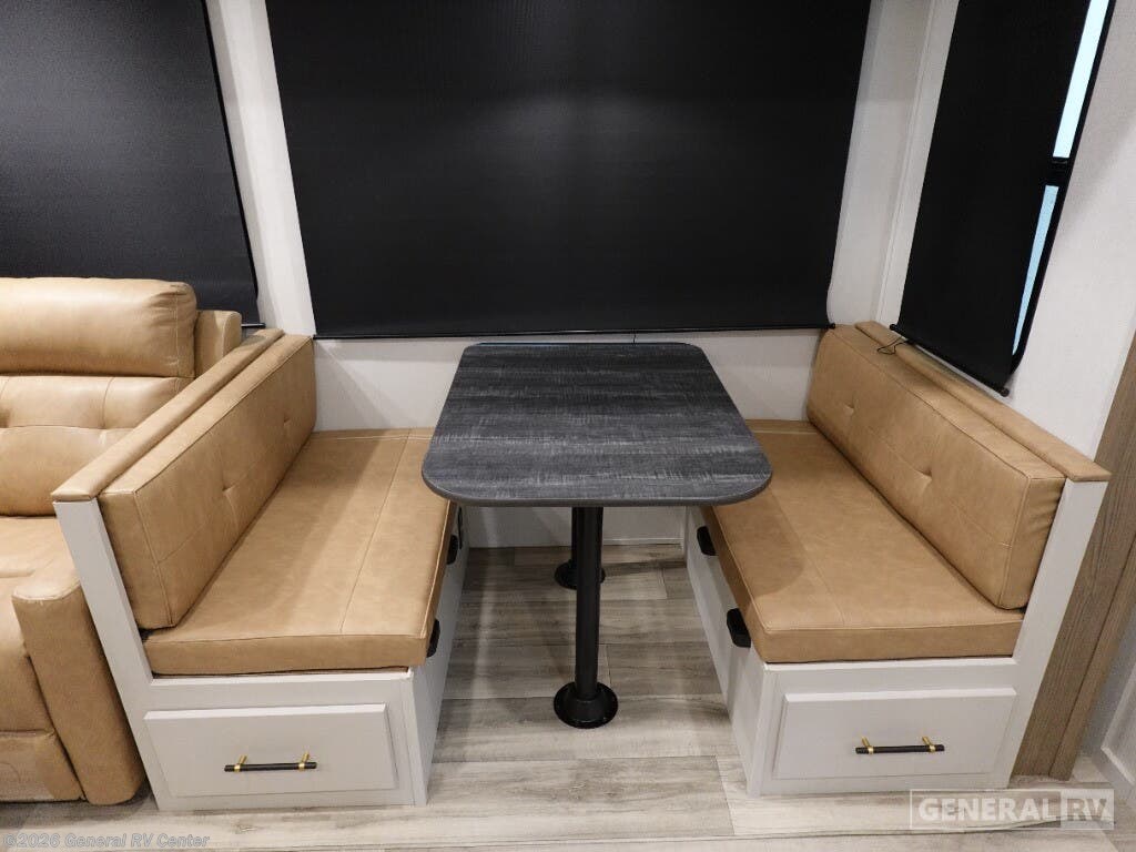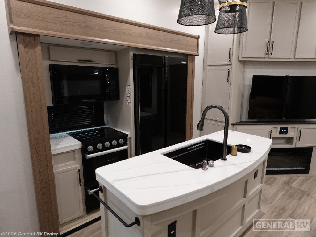 Discover the 2025 Dutchmen Astoria Platinum 3603LFP, where luxury meets practicality in a spacious design that accommodates up to eight guests. This impressive fifth wheel is crafted for comfort with a king-sized bed in the master suite and a cozy double bed in the loft area, offering restful retreats after a day of adventure. The center kitchen is a culinary delight, featuring a full-size electric refrigerator, a three-burner cooktop, and a farm-style sink, making meal preparation a breeze. The inviting living area, complete with theater seating and a booth dinette, is perfect for family gatherings or a relaxing evening indoors. The Astoria Platinum 3603LFP is as functional as it is stylish. With its three slides, the interior feels open and airy, while the dual awnings provide ample outdoor living space. The thoughtfully designed bathroom includes a walk-in shower with a skylight, ensuring a refreshing experience. This model is prepped for a washer and dryer, adding to its convenience for extended trips. With ample storage throughout, including pass-through storage and a pantry, you’ll have plenty of room for all your travel essentials. Ready to explore this exceptional RV further? Visit your nearest General RV dealership today!