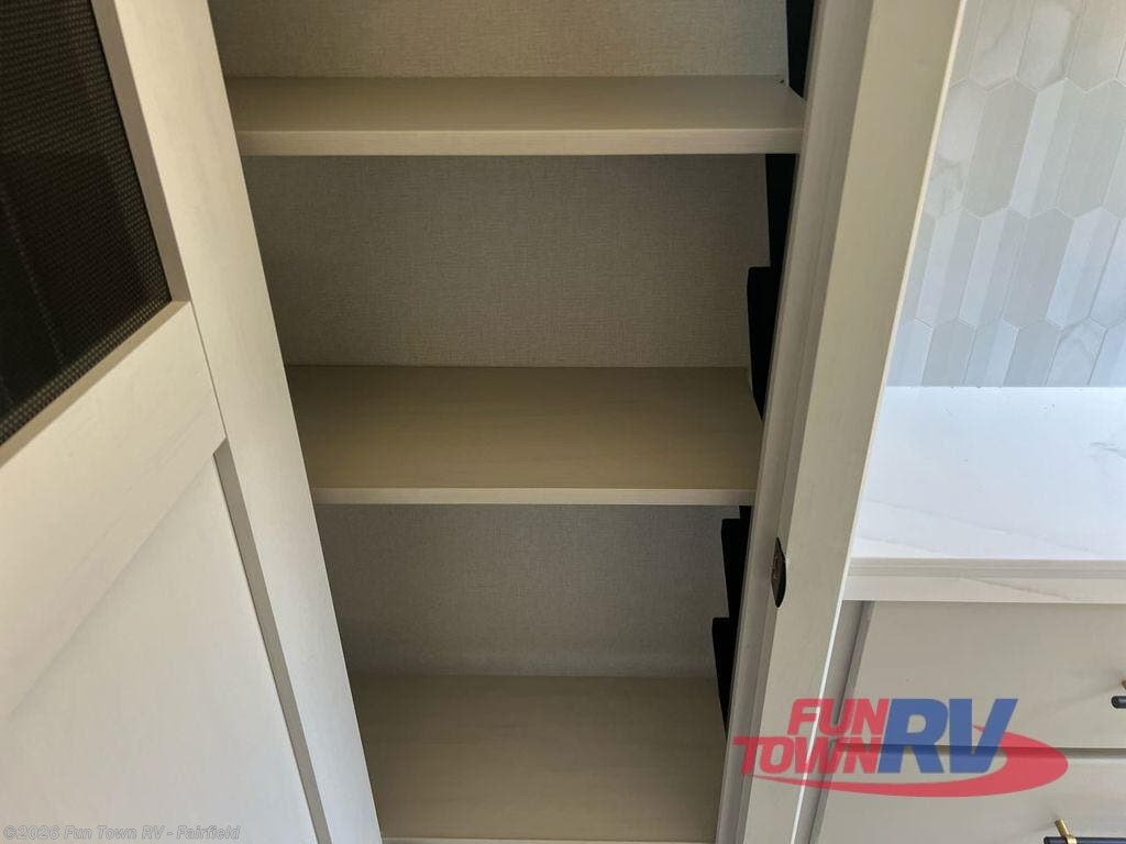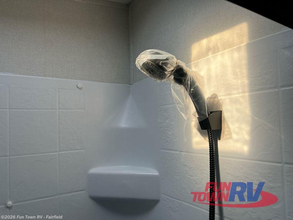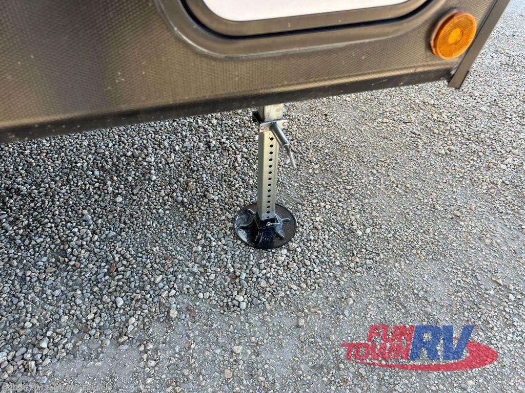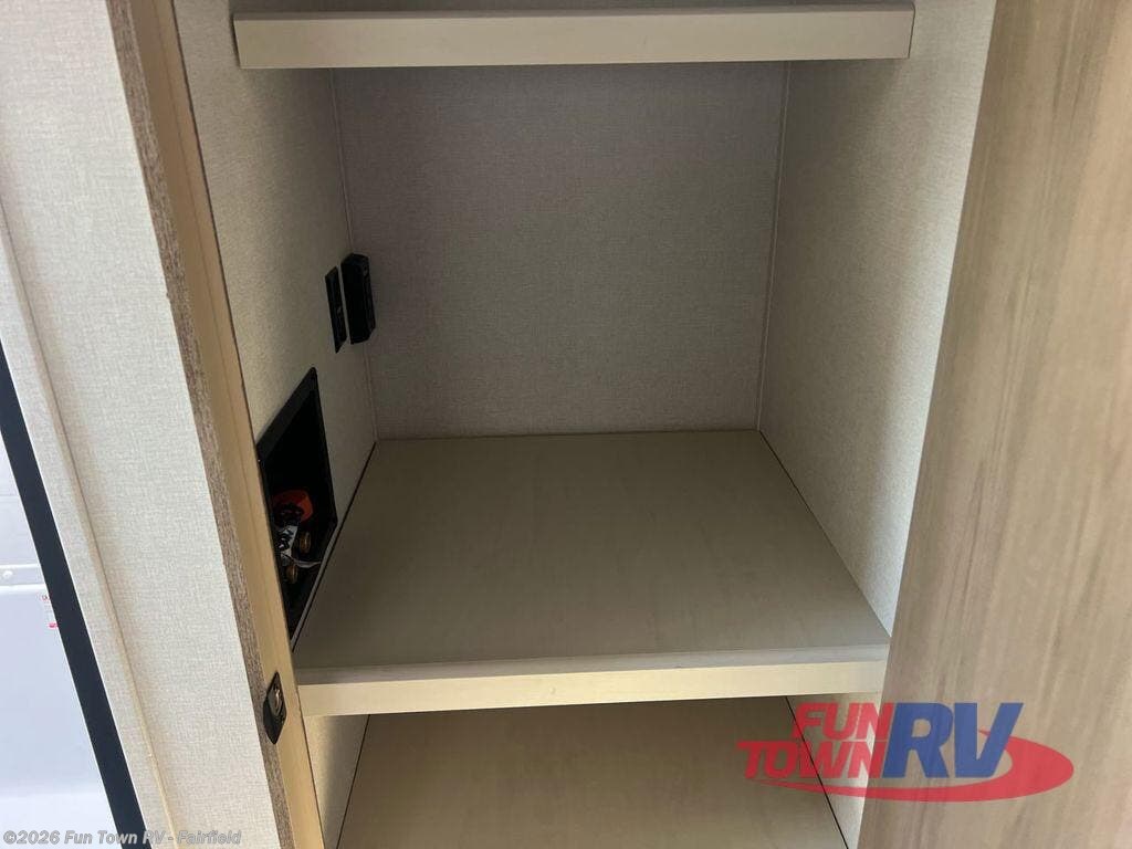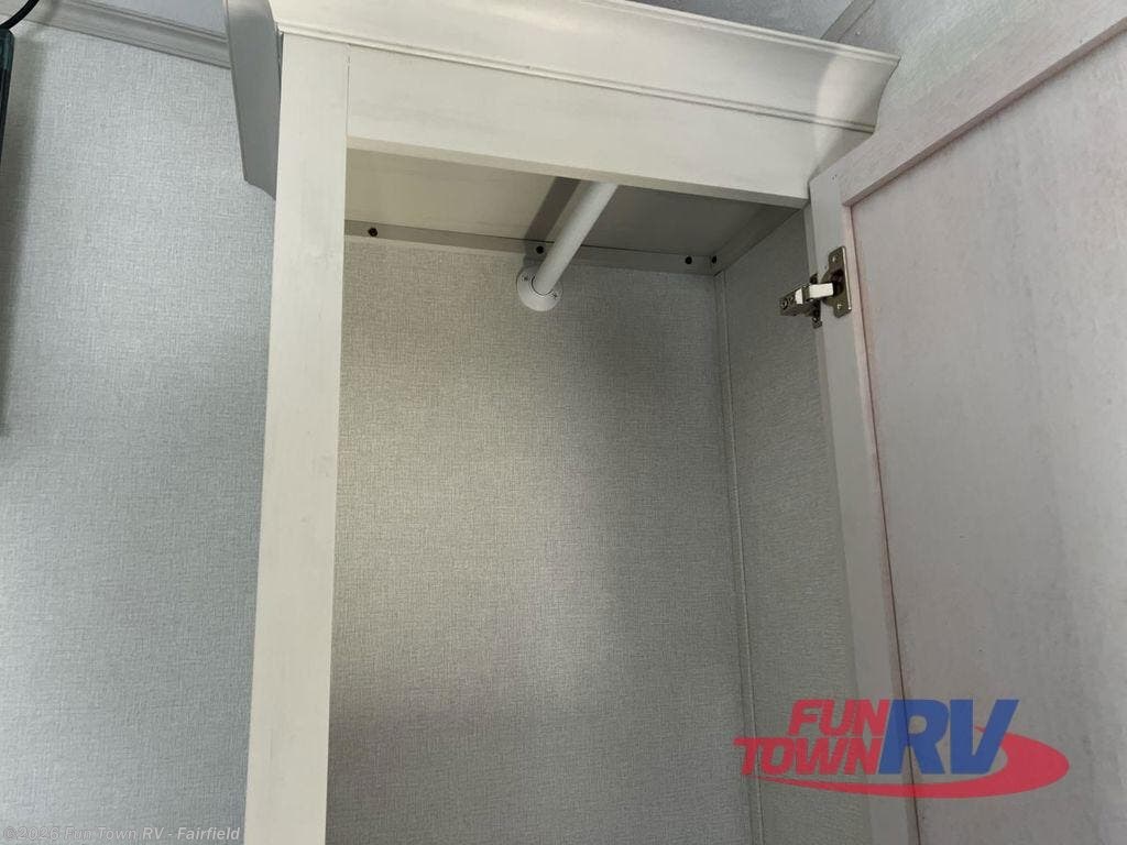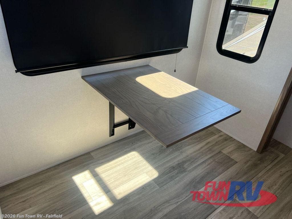 Experience a comfortable camping trip with this fifth wheel! The front living area not only has opposing sofa slides, but also theater seating across from an entertainment center with a 40" fireplace and a HD LED TV. The separate kitchen has everything you will need to prepare delicious home cooked meals including a glass top three burner cooktop with an oven and a kitchen island with a large sink that has a high rise faucet with a sprayer for an easy clean up. There is even a half bathroom by the kitchen so you can use it and quickly get back to cooking. The master suite has a king bed slide for more interior space, an entertainment center for a comfortable movie night, and access to the spacious full rear bathroom with a dual sink vanity, storage and washer/dryer prep!