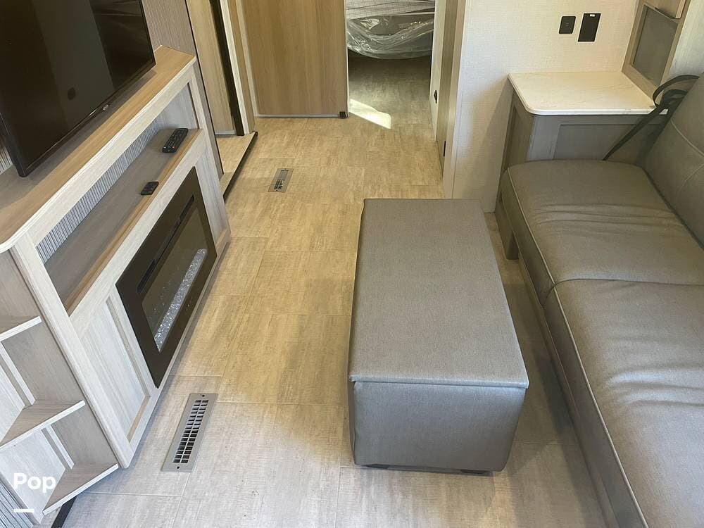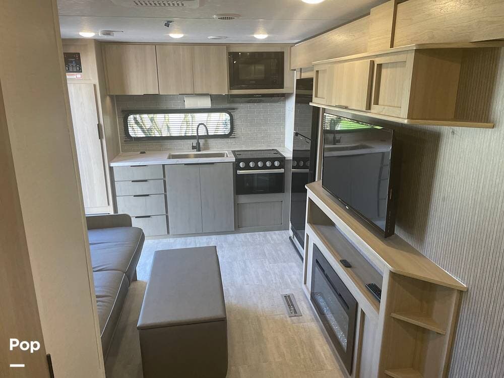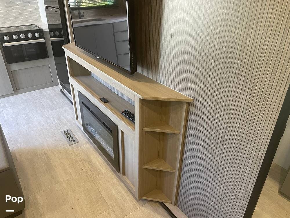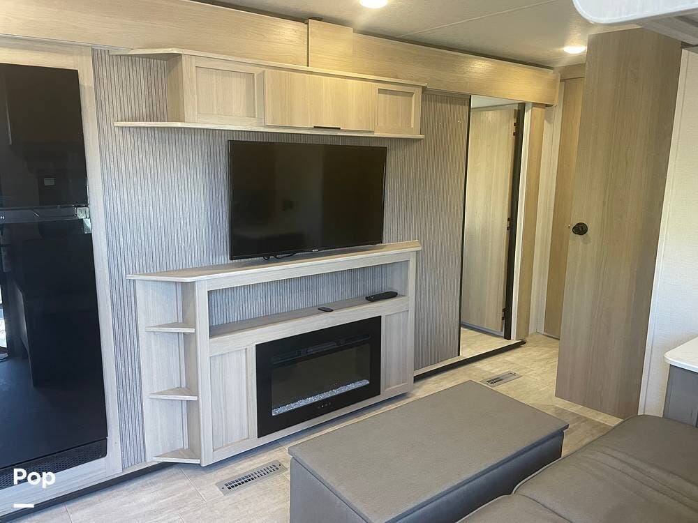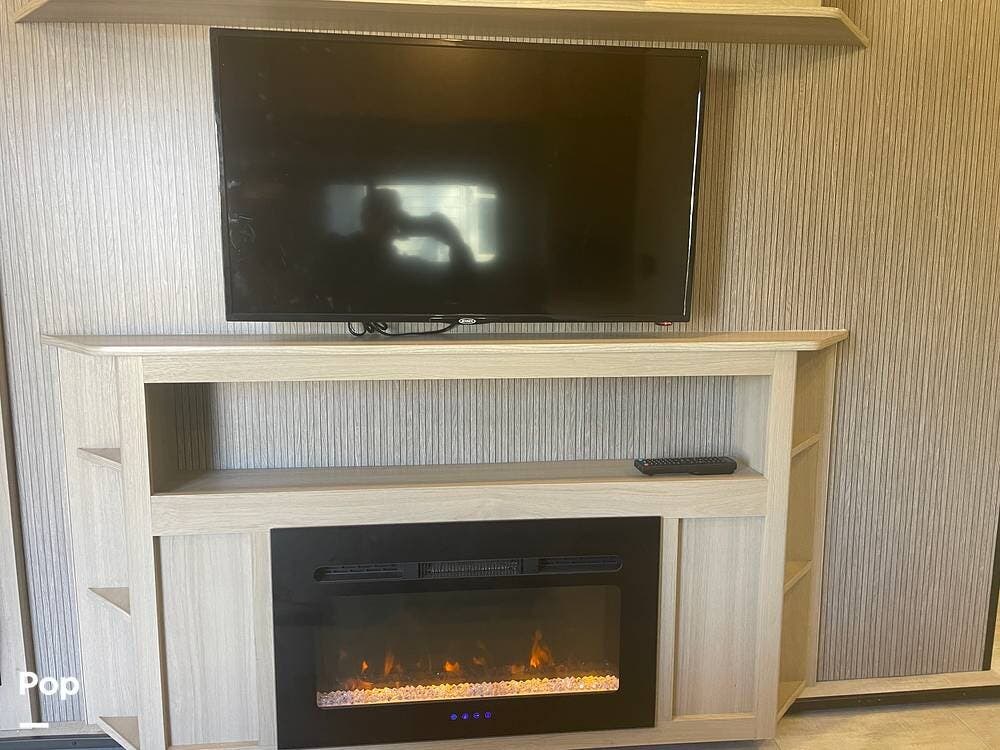 The Kodiak has a full galley, sleeps 6 with a standard bed in the bedroom and TV, bunk room and jack knife couch, there is a TV in the living area along with a fireplace.