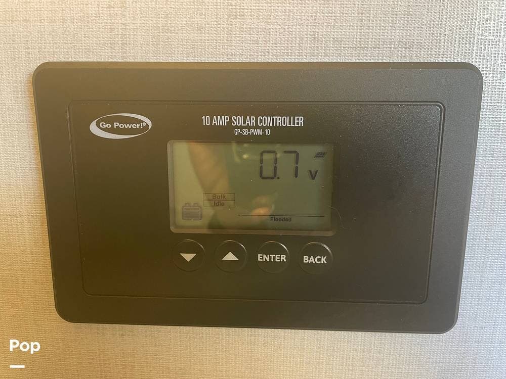 The unit has 2 AC units, a solar panel, an awning, and plenty of storage inside and out, along with a TV hookup and an outdoor connection.