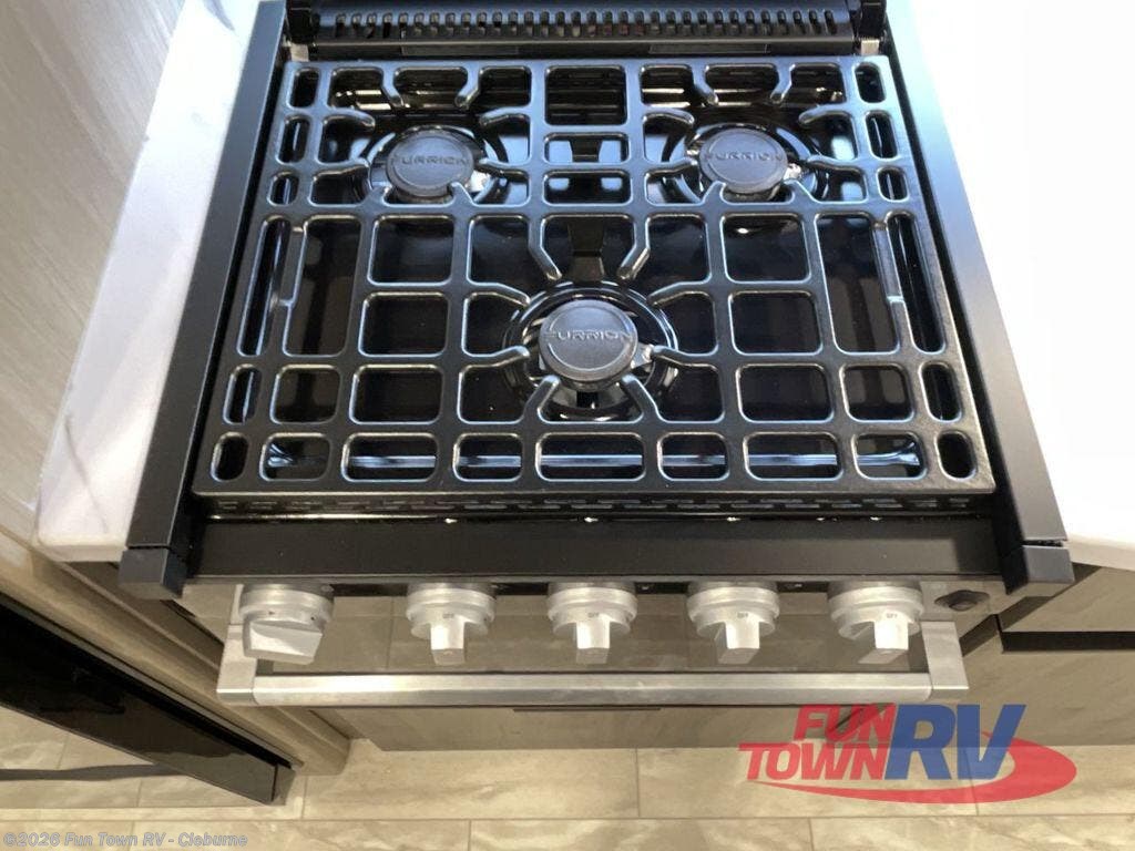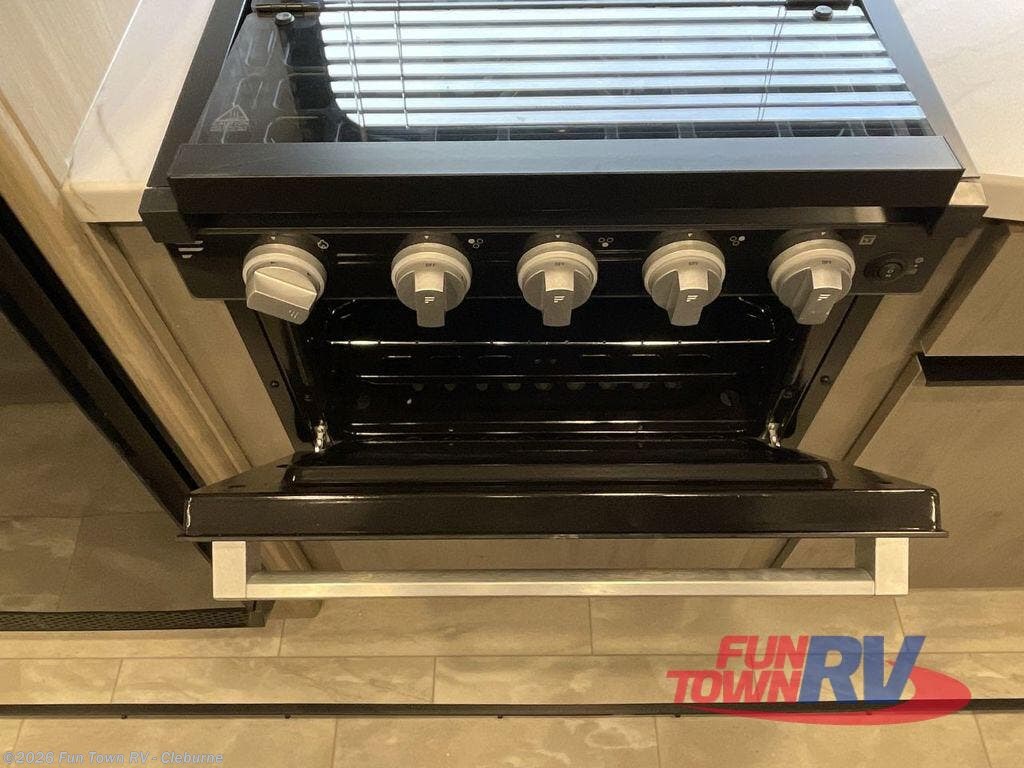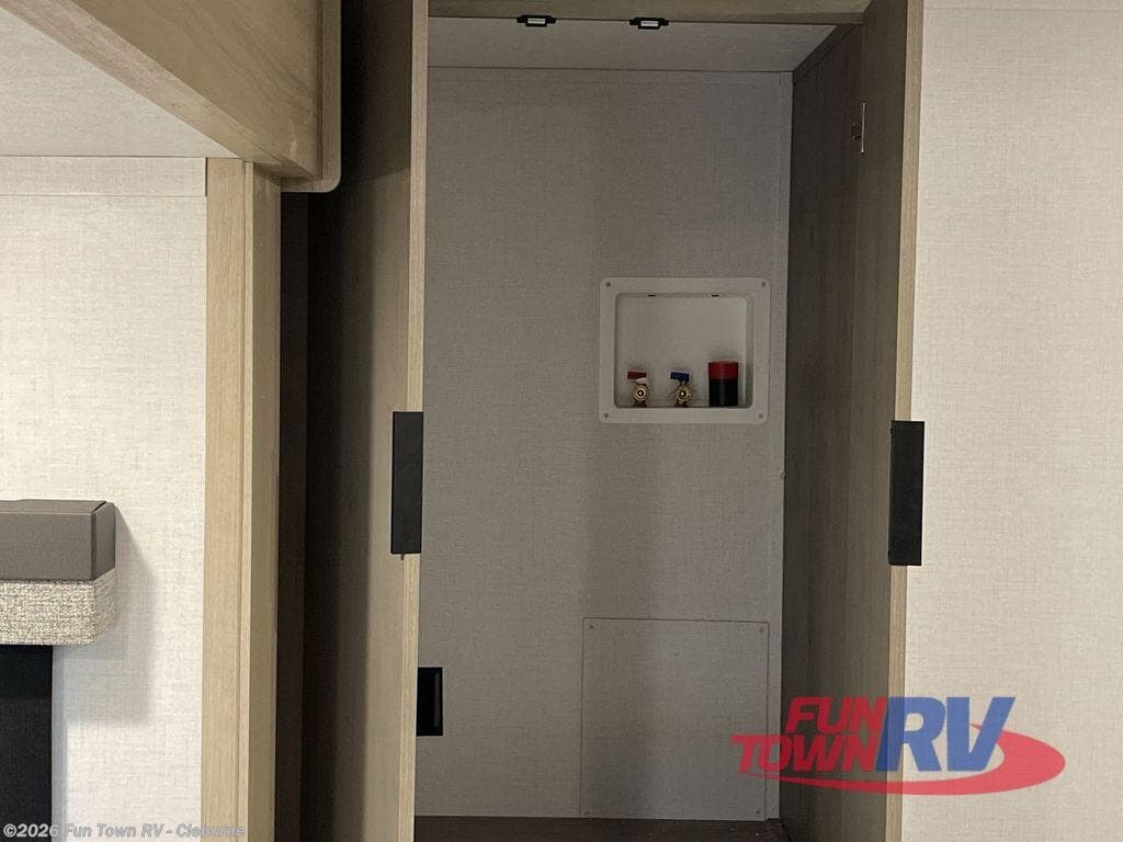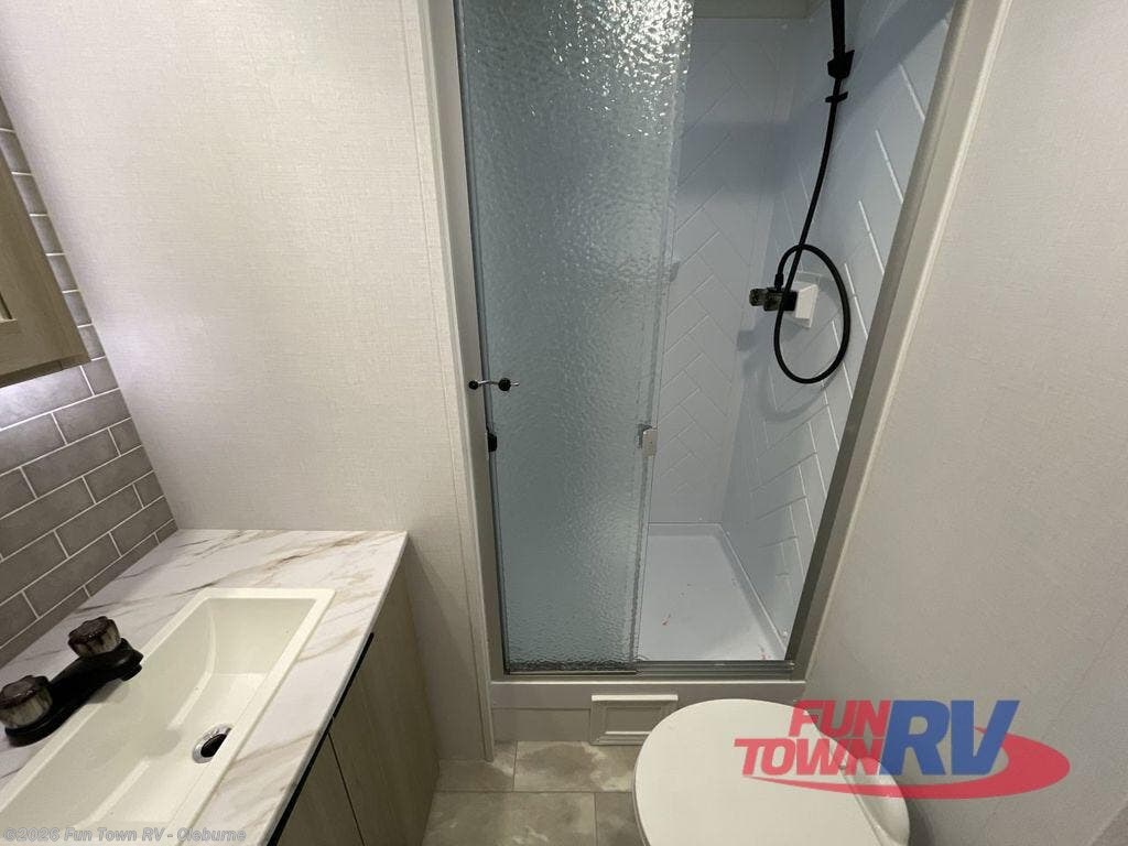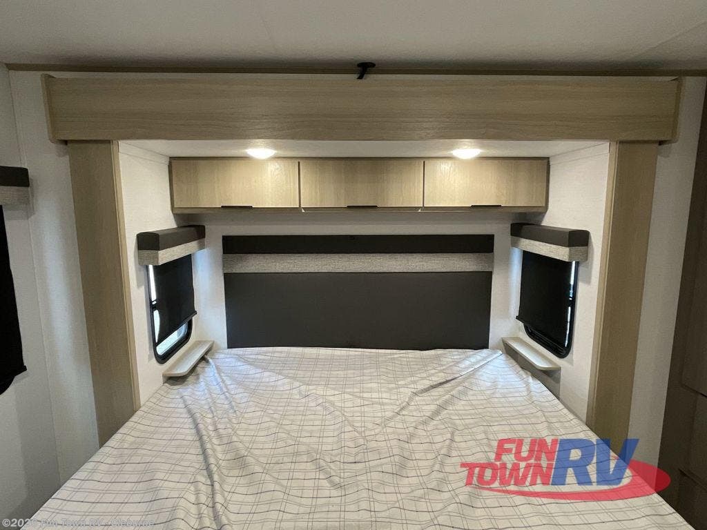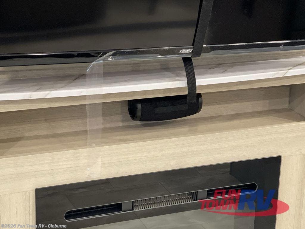 Enjoy ultimate family vacations or trips with friends in this spacious travel trailer. The dual opposing slides in the front living area open up the whole unit for a more at-home feel, and you'll find plenty of seating spaces on the theater seating with a foot rest, booth dinette, and jack knife sofa. The chef of the family will appreciate the extra counter space provided by the kitchen island, plus there is an extra counter with cabinets above for dishes and food. There is an outside kitchen that will come in handy if you like to cook breakfast outdoors, and the power awning with LED lights will provide your crew with shade as they wait for the food to be done. You and your spouse will love retreating to the rear private bedroom for bed each night. Here, the slide out king bed will provide a great night's rest, plus you will have your own fireplace, a closet, and linen storage for more belongings!