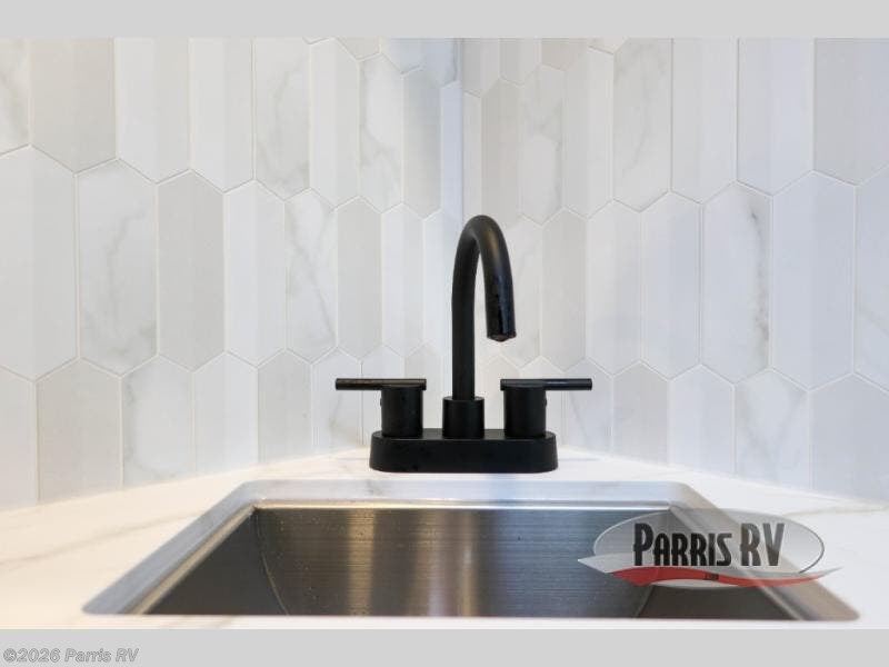With any Voltage Triton toy hauler fifth wheel by Dutchmen you will appreciate luxury at every turn. The 7' slide boxes provide you with space to stretch out, plus there are oversized windows to let the sun through each morning. Some of the other interior comforts you are sure to love are the pleated night shades throughout the entire coach, the stainless steel kitchen sink, the upgraded heat and massage sofas, and more. Each model includes a 30" residential microwave, an on-demand tankless water heater, plus two upgraded A/C's to keep you cool all summer long. The garage is ready to house your favorite toys with 2,500 lb. tie-downs and a Tuff Ply floor, and you can add the optional ramp door patio system for more fun. You will also enjoy the two indoor/outdoor speakers, plus a pull down screen to keep the bugs out when you want to dine at the table.