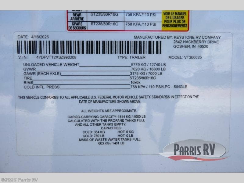 Request More Info on this 2025 Dutchmen Voltage V-Series 3600 Offered for sale by Parris RV