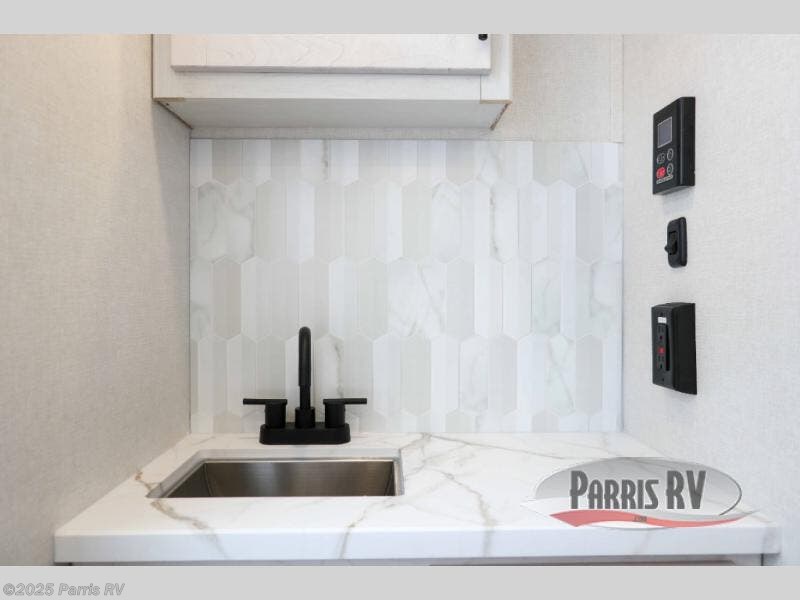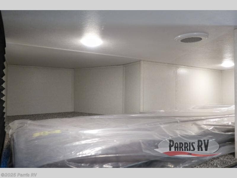 The Voltage V-Series by Dutchmen RV is a smaller and lighter weight choice when it comes to a toy hauler. These were designed with the same comforts that you would find in the standard Voltage models with the Signature Series collection including glazed cabinets with raised panel cabinet doors, modern hardware throughout, upgraded finishes and custom paint and stain. You will also enjoy the tankless water heater, garage Bed Lift System, Tuff Ply garage floor, and weight assisted ramp door for ease in loading and unloading your toys. A few bonus features like a 50" walk-in shower, 40" fireplace, and 30 gallon fuel station just makes your adventures that much more enjoyable! Come choose the Voltage V-Series as your new lightweight companion toy hauler today!