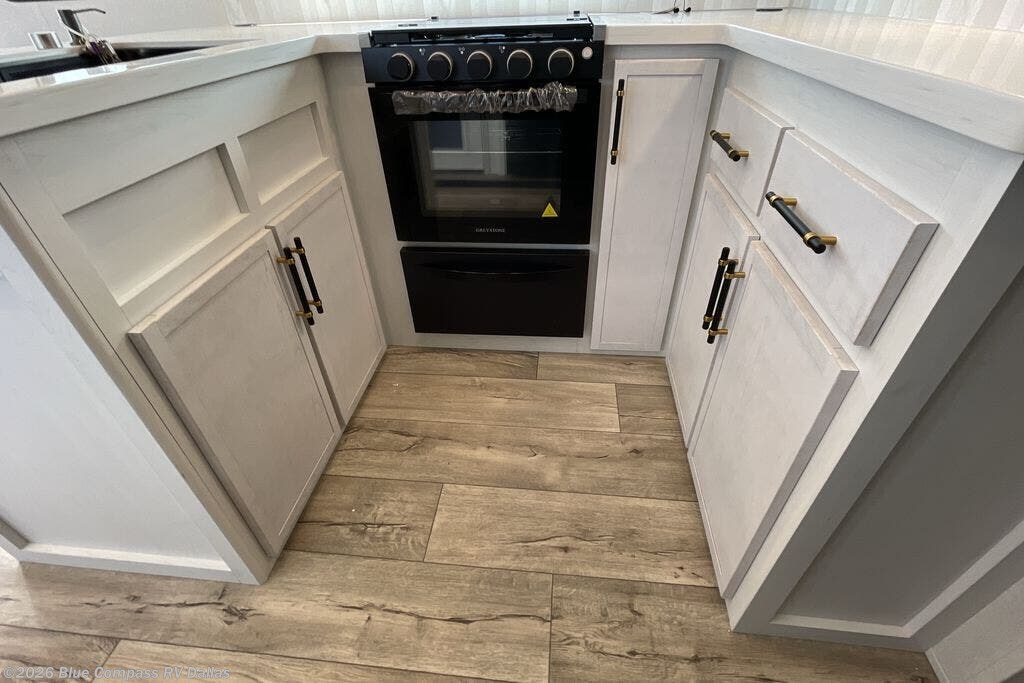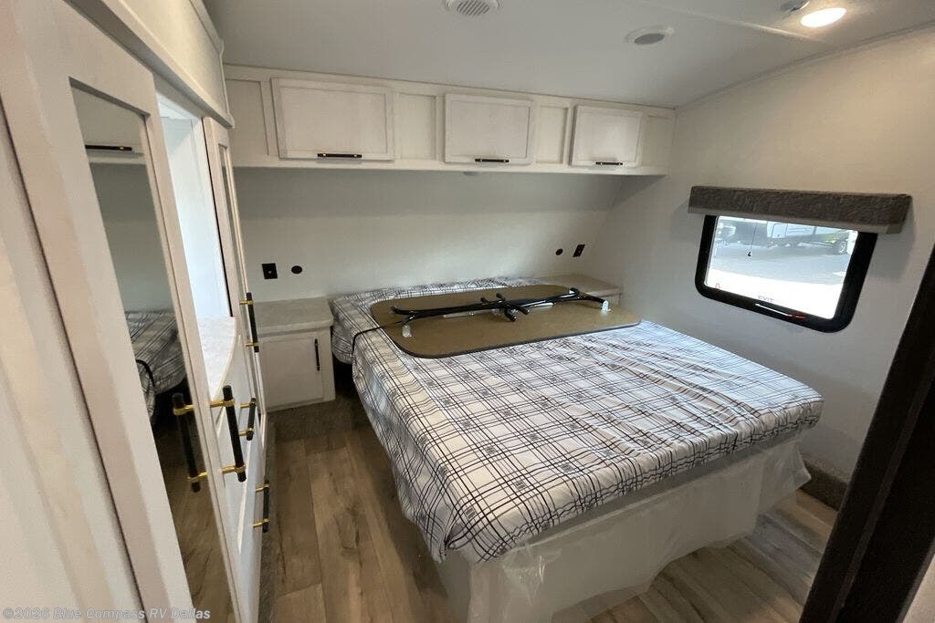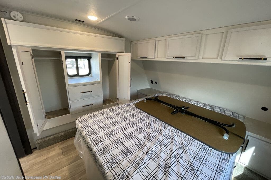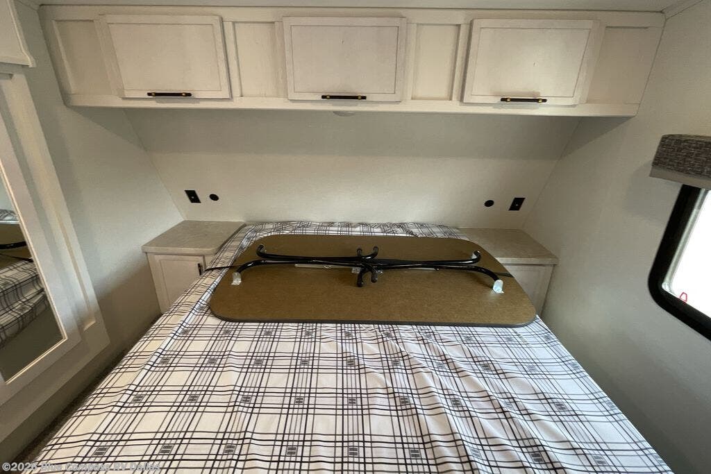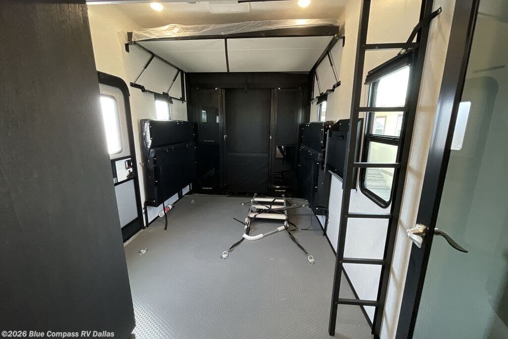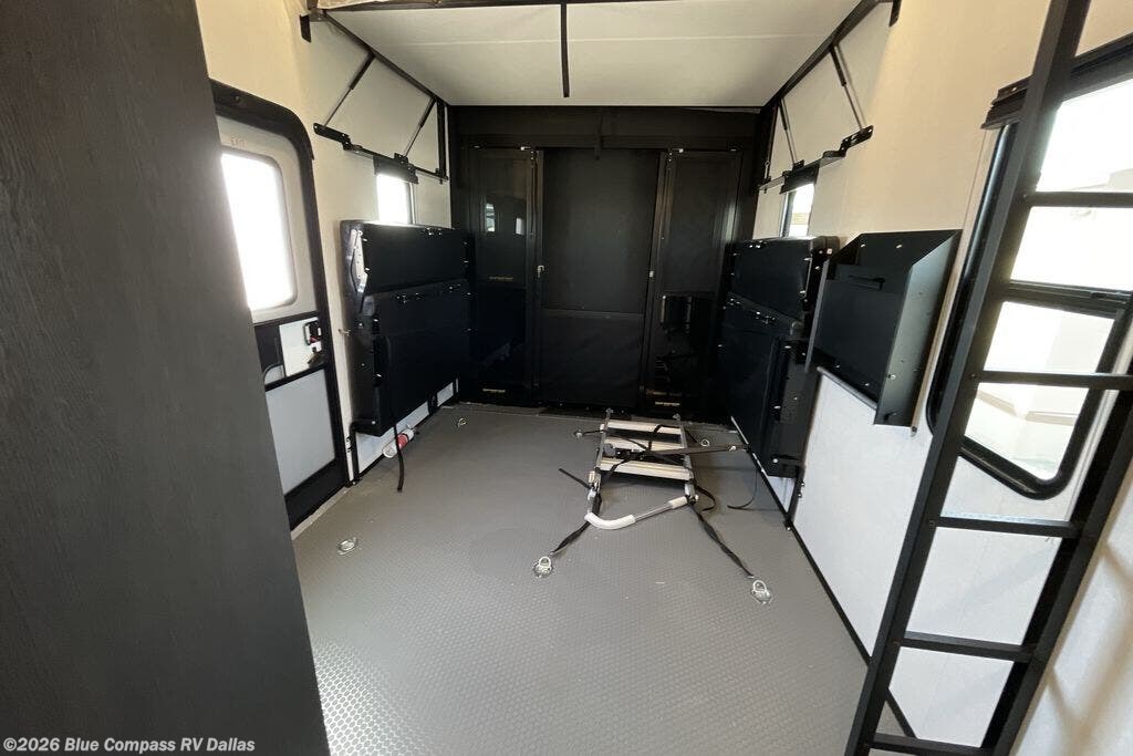 Load up your favorite off-road toys, grab a few friends and head out for a weekend of fun! This Voltage V-Series features a 14' garage with sleeping for seven or eight with the Bed Lift System over the dual sofas and dinette which convert to more sleeping in the garage area, a loft, and private front bedroom with queen bed. The main combined kitchen and living space features a reclining sofa with foot rest housed in the large slide that also includes a 16 cu. ft. 12V refrigerator and pantry for all of your food storage needs. There are full kitchen and bath amenities to keep you fueled and clean, and you will also enjoy the 40" TV and fireplace when relaxing inside. A 21' awning offers additional living space outside, and there is a Pac & Stack half bath in the garage for added convenience when coming in from a ride located beneath the loft. This unit also offers ample storage with a full pass-through compartment outside, and inside cabinets, pantry storage, plus wardrobe, dresser, and under bed storage as well.