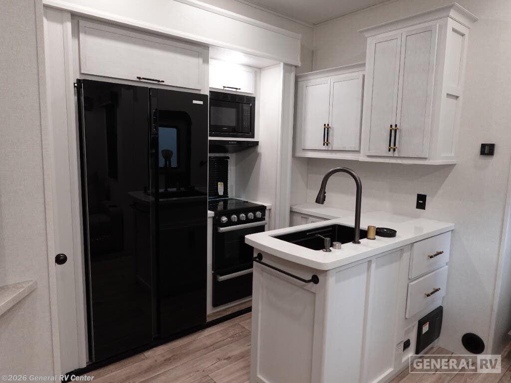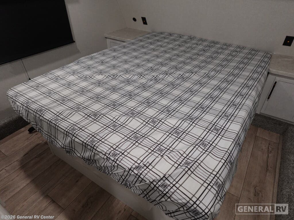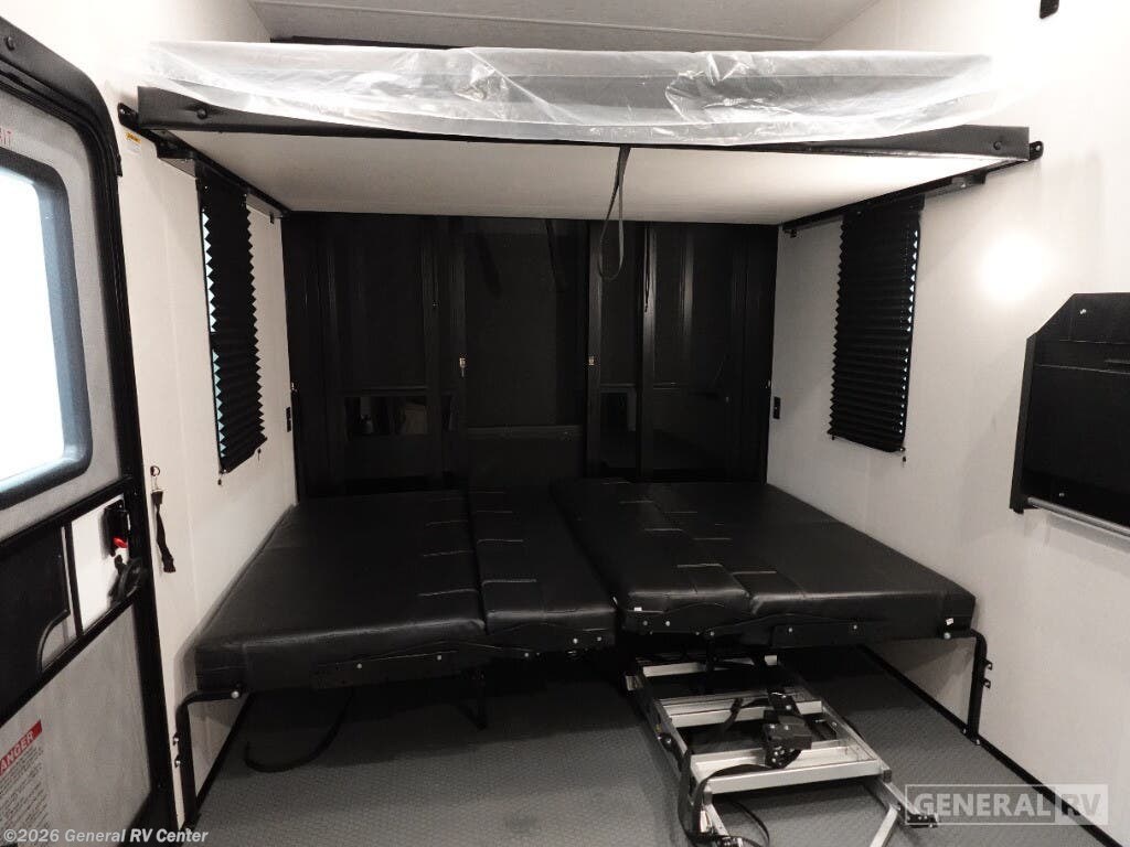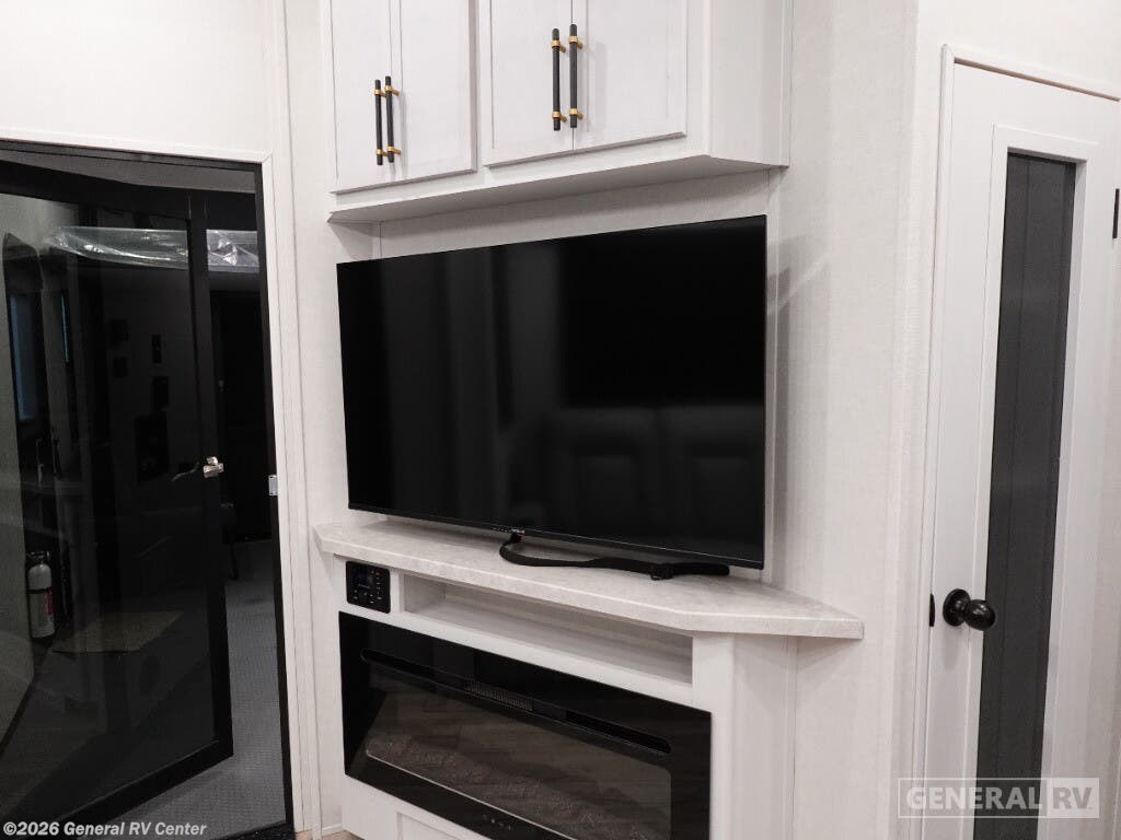 The 2025 Dutchmen Voltage V Series 3600 is a marvel of modern RV design, offering a luxurious retreat for travelers seeking adventure without sacrificing comfort. With a spacious 14-foot garage, this toy hauler is perfect for bringing along your favorite outdoor toys. The dual axle ensures a smooth ride, while the 21-foot powered retractable awning extends your living space into the great outdoors. Inside, the center kitchen and living area are designed for both functionality and relaxation. The full-size electric refrigerator and three-burner cooktop make meal prep a breeze, and the cozy fireplace adds a touch of warmth to your evenings. This RV comfortably sleeps seven, with two queen beds and a convertible bed, plus a loft bed for extra versatility. The front bedroom offers a private oasis with a walk-around queen bed, while the center bathroom features a stylish walk-in shower. Prepped for a washer and dryer, this model ensures longer trips are hassle-free. With generous fresh, gray, and black water capacities, your adventures can be as extended as you desire. The Voltage V Series 3600 is not just an RV; it's a home on wheels, ready to take you wherever your heart desires. For more information, visit your nearest General RV Dealership Location.