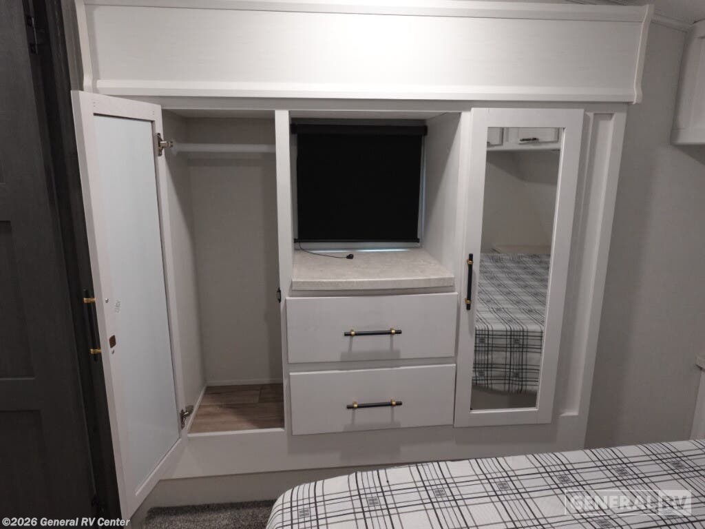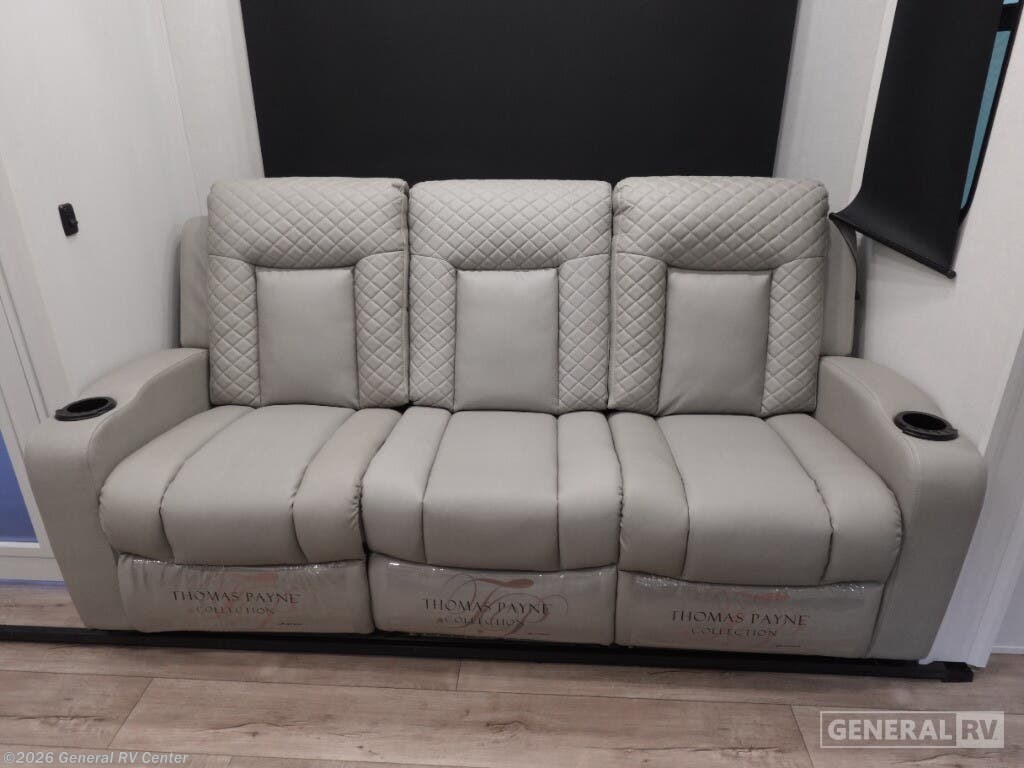Experience the ultimate in luxury and adventure with the 2025 Dutchmen Voltage V Series 3800. This stunning fifth wheel is designed for those who crave both comfort and excitement on the road. With its impressive 42.83-foot length and a spacious 14-foot garage, this RV is perfect for bringing along your favorite toys and making unforgettable memories. The dual axle setup ensures a smooth ride, and the 21-foot powered retractable awning provides the perfect outdoor space to relax after a day of exploration. Inside, you'll find a thoughtfully designed floorplan featuring a center kitchen and living area, perfect for entertaining or simply enjoying a cozy night in. The full-size electric refrigerator and three-burner cooktop make meal prep a breeze, while the reclining sofa with footrests offers ultimate relaxation. Accommodating up to seven sleepers, this RV boasts two queen beds, a convertible bed, and a cozy loft bed, ensuring everyone has a comfortable place to rest. The front bedroom with a 60" x 80" queen bed offers a private retreat, while the center bath with a walk-in shower provides convenience and style. Plus, it's prepped for a washer and dryer for added convenience on long journeys. For more information or to see this incredible RV in person, visit your nearest General RV Dealership. Your adventure awaits!