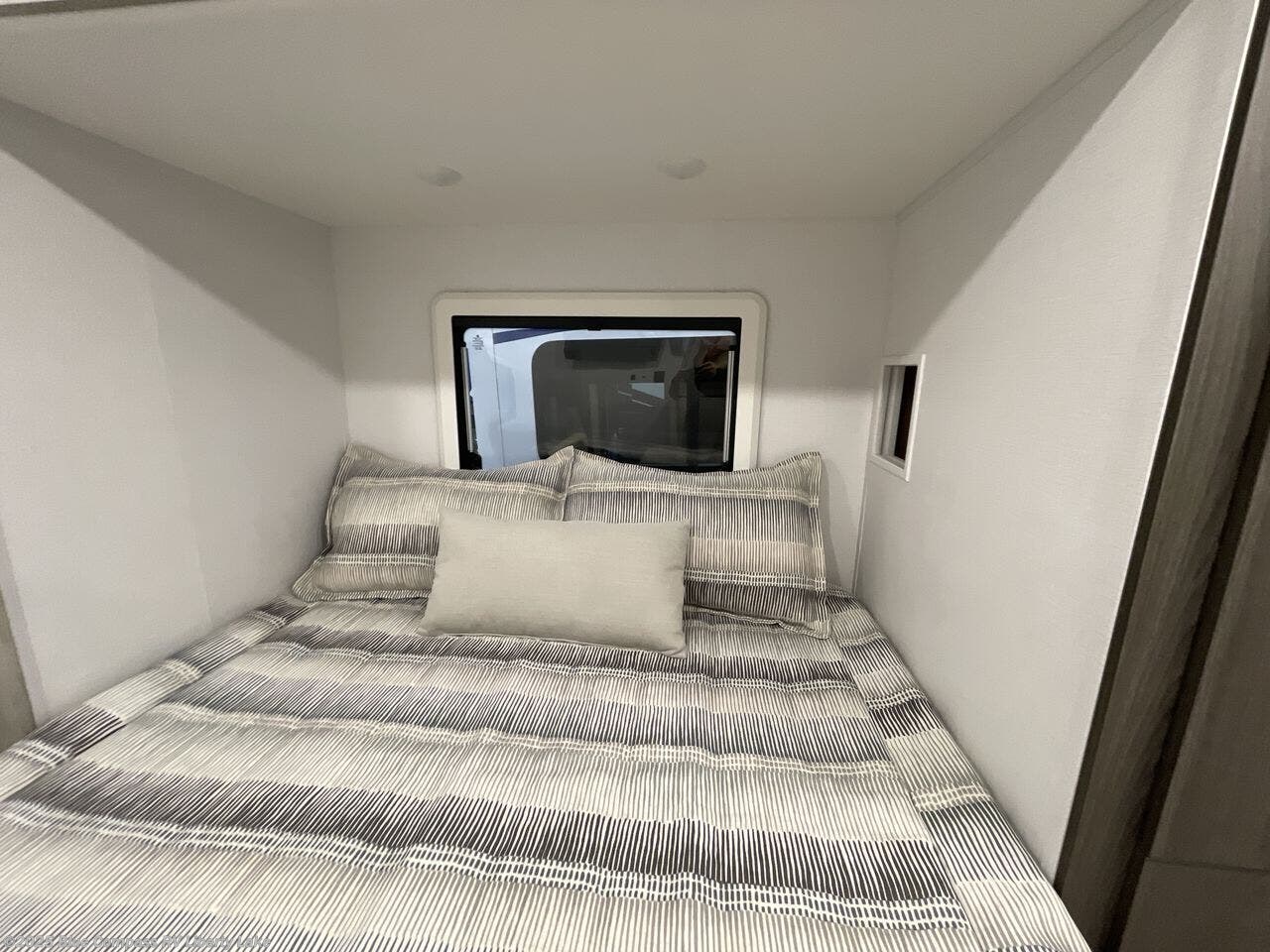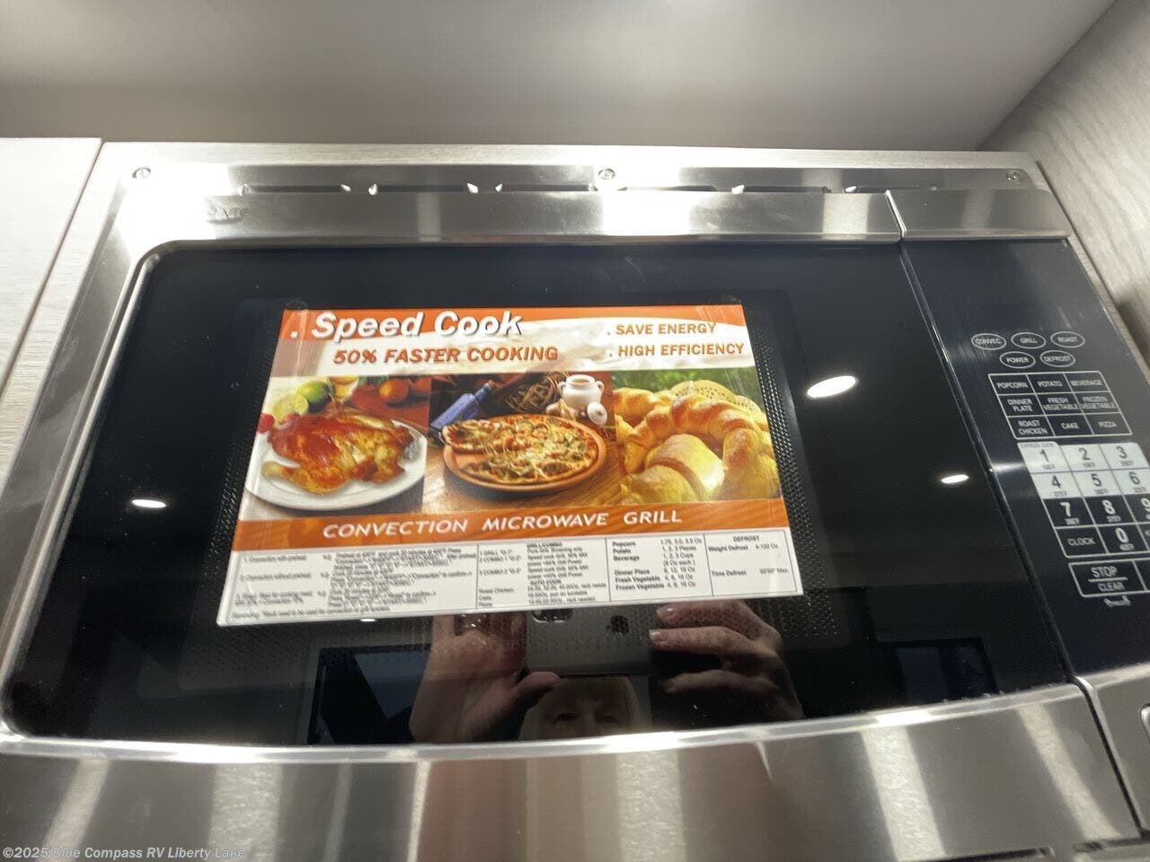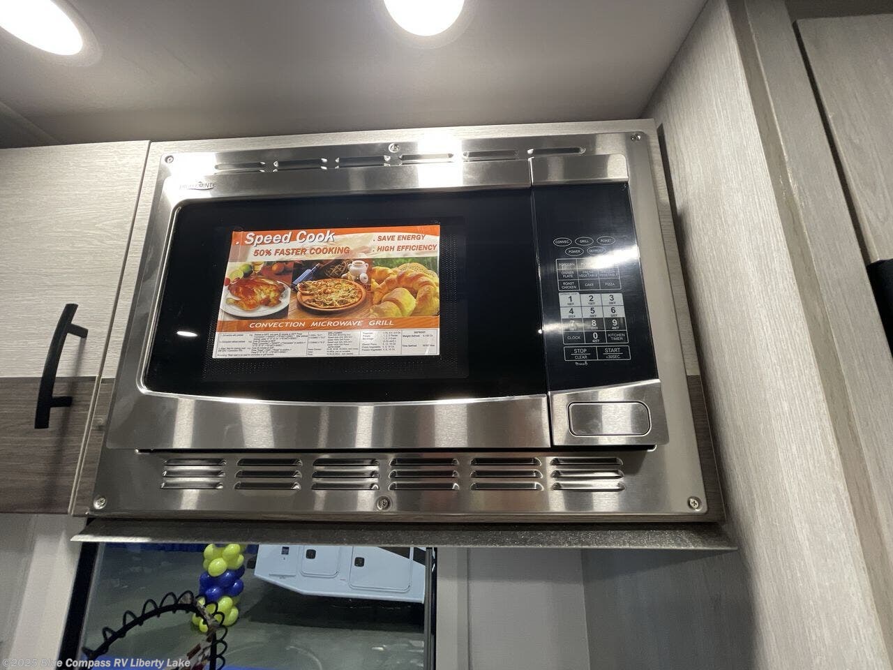 Take this motorhome on your greatest adventures yet! Start each morning feeling well rested after sleeping on the corner queen bed then head to the rear corner bathroom to freshen up in the shower with an Oxygenics body spa RV shower head and a skylight above for added headroom and natural lighting. Now that you're ready for the day, you can grab some eggs from the 8 cu. ft. two-door compressor-driven refrigerator and fry them up on the three burner cooktop, then enjoy them at the booth dinette. The kitchen also has a countertop extension for more meal prepping space and a convection microwave. This unit also includes a living room 32" LED Smart TV and a 32" LED smart TV across from the bed. You could even switch things up by replacing the booth dinette with an optional 3-seat power recliner, and adding a cab over bunk option!