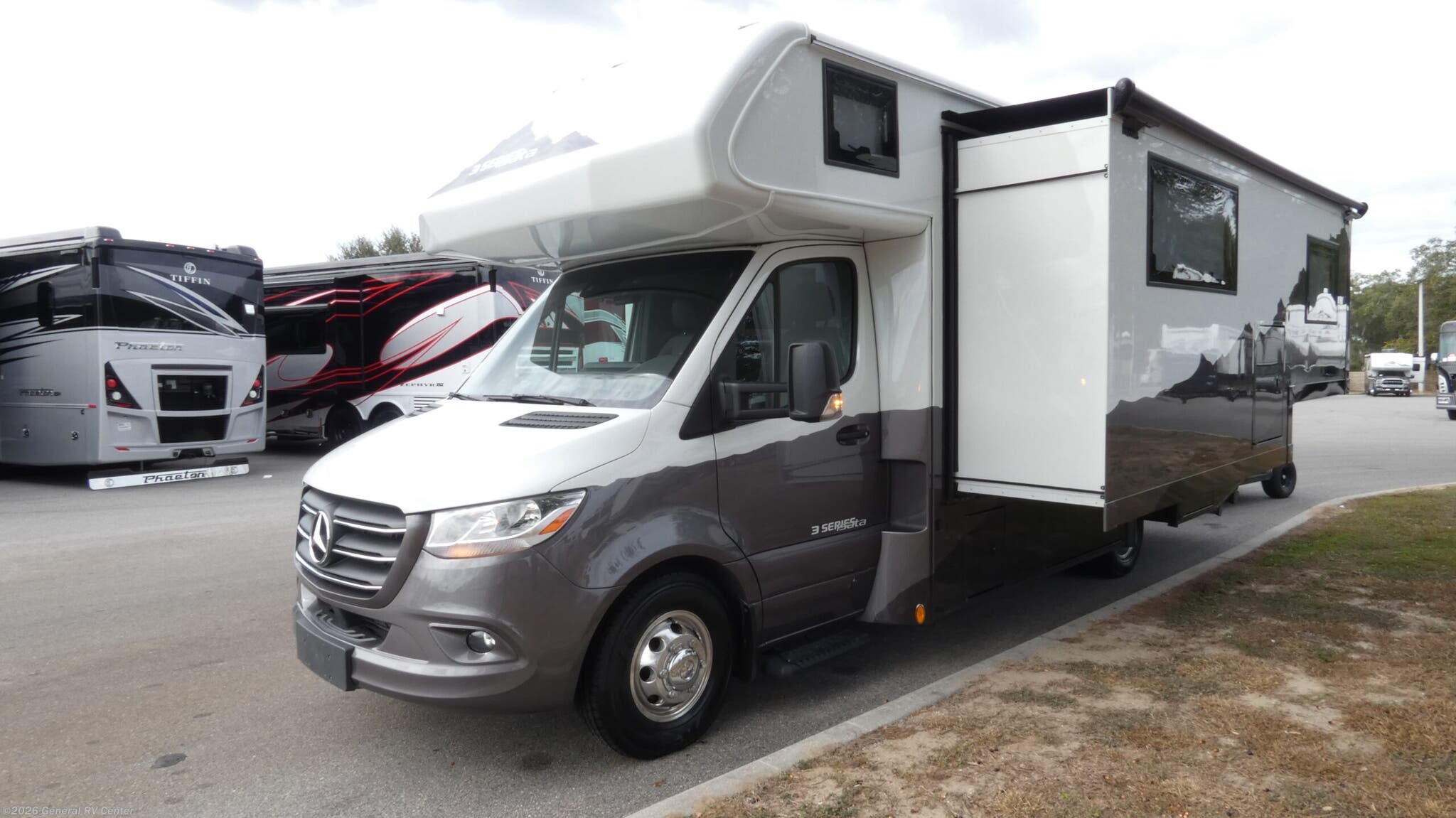 Dynamax isata 3 Class C diesel motorhome 24FW highlights: Queen Bed Rear Corner Bathroom Exterior Speakers Take this motorhome on your greatest adventures yet! Start each morning feeling well rested after sleeping on the corner queen bed then head to the rear corner bathroom to freshen up in the shower with an Oxygenics body spa RV shower head and a skylight above for added headroom and natural lighting. Now that you're ready for the day, you can grab some eggs from the 8 cu. ft. two-door compressor-driven refrigerator and fry them up on the three burner cooktop, then enjoy them at the power recliner. The kitchen also has a countertop extension for more meal prepping space and a convection microwave. This unit also includes a living room 32" LED Smart TV and a 32" LED smart TV across from the bed. Each one of these Dynamax isata 3 Class C diesel motorhomes were designed to last for years of fun with composite exterior fiberglass with no exterior wood, aluminum-framed roof trusses, and composite flooring substrate. The 2.0L l-4 turbo diesel engine will power your adventures, and the Mercedes-Benz Sprinter chassis provides a durable foundation. There is an MBUX 10.25" infotainment system and a quad-view camera system that will let the driver navigate the open road like a pro, and the added safety features are sure to bring you peace of mind. Outside, you'll be wowed by the custom full-body paint package with front-end Diamond Shield paint protection, plus there are exterior speakers, an armless patio awning with LED lights, and seamless rotocast storage compartments for your gear! Each model also includes many interior comforts to make you feel right at home, like the premium vinyl flooring throughout, hardwood craftsman-style cabinetry, solid surface countertops with LED edge lighting and backsplash, and the list goes on!
