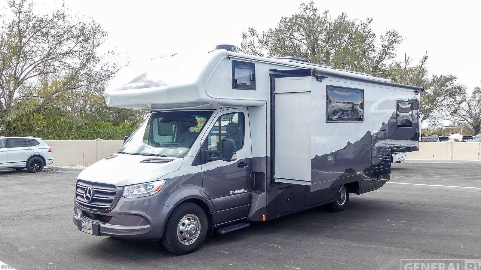 **Dynamax isata 3 Class C diesel motorhome 24FW highlights:** * Queen Bed * Booth Dinette * Rear Corner Bathroom * Exterior Speakers Take this motorhome on your greatest adventures yet! Start each morning feeling well rested after sleeping on the corner queen bed then head to the rear corner bathroom to freshen up in the shower with an Oxygenics body spa RV shower head and a skylight above for added headroom and natural lighting. Now that you're ready for the day, you can grab some eggs from the 8 cu. ft. two-door compressor-driven refrigerator and fry them up on the three burner cooktop, then enjoy them at the booth dinette. The kitchen also has a countertop extension for more meal prepping space and a convection microwave. This unit also includes a living room 32" LED Smart TV and a 32" LED smart TV across from the bed. You could even switch things up by replacing the booth dinette with an optional 3-seat power recliner, and adding a cab over bunk option! Each one of these Dynamax isata 3 Class C diesel motorhomes were designed to last for years of fun with composite exterior fiberglass with no exterior wood, aluminum-framed roof trusses, and composite flooring substrate. The 2.0L l-4 turbo diesel engine will power your adventures, and the Mercedes-Benz Sprinter chassis provides a durable foundation. There is an MBUX 10.25" infotainment system and a quad-view camera system that will let the driver navigate the open road like a pro, and the added safety features are sure to bring you peace of mind. Outside, you'll be wowed by the custom full-body paint package with front-end Diamond Shield paint protection, plus there are exterior speakers, an armless patio awning with LED lights, and seamless rotocast storage compartments for your gear! Each model also includes many interior comforts to make you feel right at home, like the premium vinyl flooring throughout, hardwood craftsman-style cabinetry, solid surface countertops with LED edge lighting and backsplash, and the list goes on!