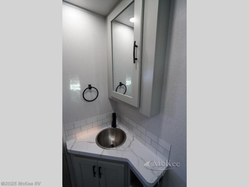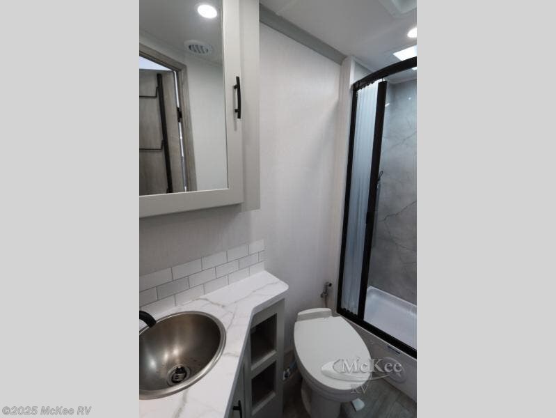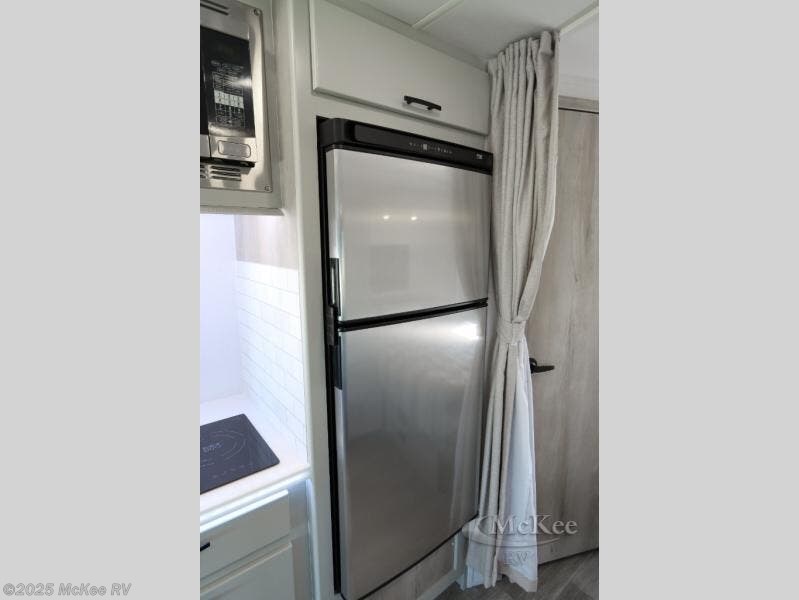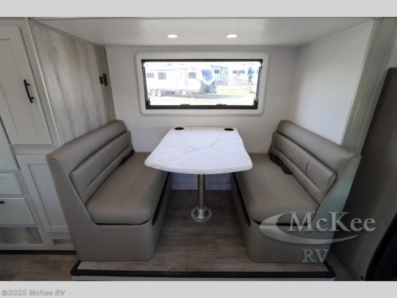 This Freedom Edition coach comes with an insulated cab curtain, an exclusive Freedom Edition full-body paint scheme with two options, and two low-temp lithium house batteries. There is also an 8 cu. ft. 12V two-door compressor-driven refrigerator, a 50 gallon fresh water tank, a 3,000W pure sine wave inverter/charger, and more stand-out features! Start each morning feeling well rested after sleeping on the corner queen bed then head to the rear corner bathroom to freshen up in the shower with an Oxygenics body spa RV shower head and a skylight above for added headroom and natural lighting. Now that you're ready for the day, you can grab some eggs from the refrigerator and fry them up on the two burner induction range then enjoy them at the booth dinette. The kitchen also has a countertop extension for more meal prepping space and a convection microwave oven to pop a bag of popcorn. There is also a living room 32" LED TV and 32" LED smart TV across from the bed. You could even switch things up by replacing the booth dinette with an optional 3-seat power recliner, and adding a cab over bunk option!