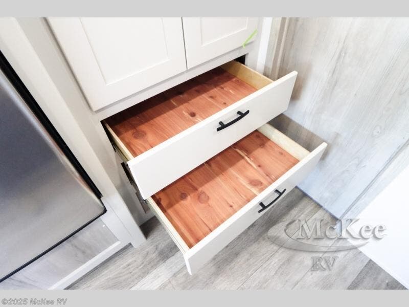 You'll love traveling in this Freedom Edition coach that comes with dual pane acrylic windows with built-in day/night shades and exclusive Freedom Edition full-body paint. There is also an insulated cab curtain, two low-temperature lithium house batteries, a 3,000W inverter/charger, and more features within this edition. The booth dinette and Murphy bed within the large slide out provide a place to relax, dine, and sleep, and the full rear bath is sure to be appreciated when it's time to freshen up. You'll find everything you need in the kitchen to make meals each day, including a two burner induction range, a convection microwave, plus a 12V 8 cu. ft. two-door compressor-driven refrigerator.