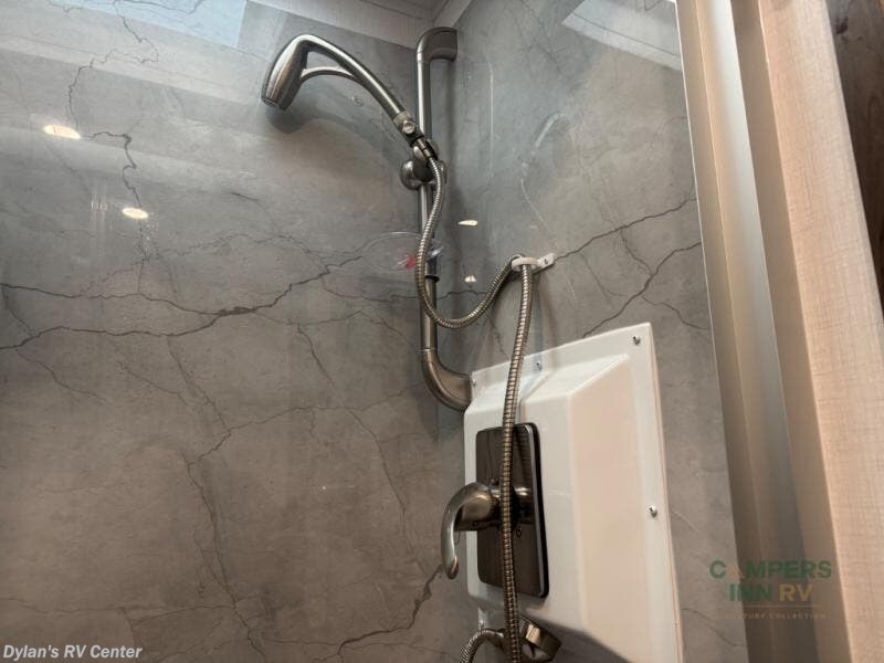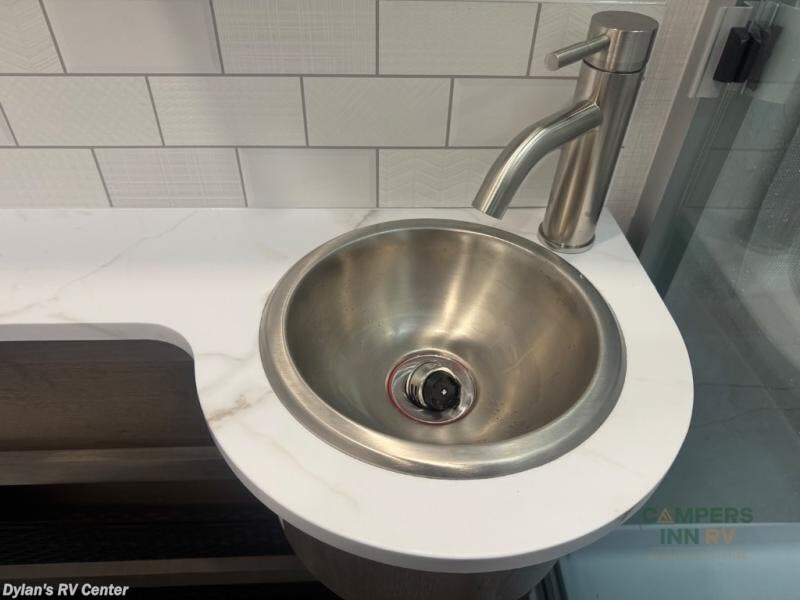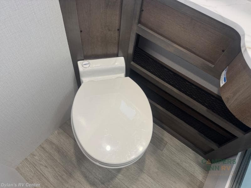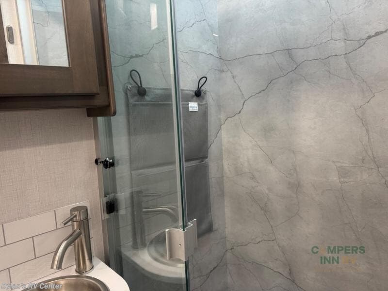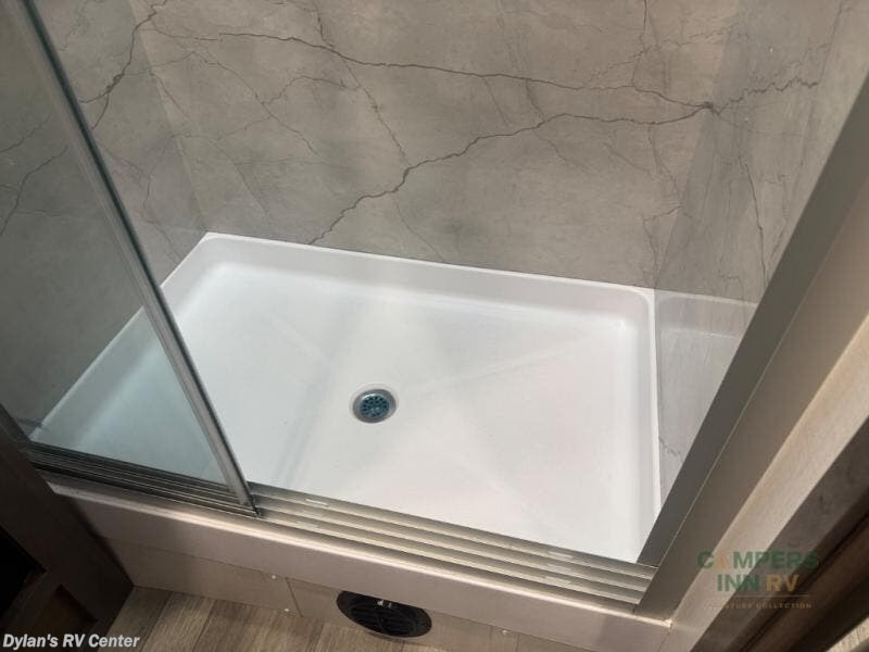 - The full bathroom boasts a spacious shower, porcelain toilet, and vanity, ensuring you stay fresh and comfortable no matter where you roam.