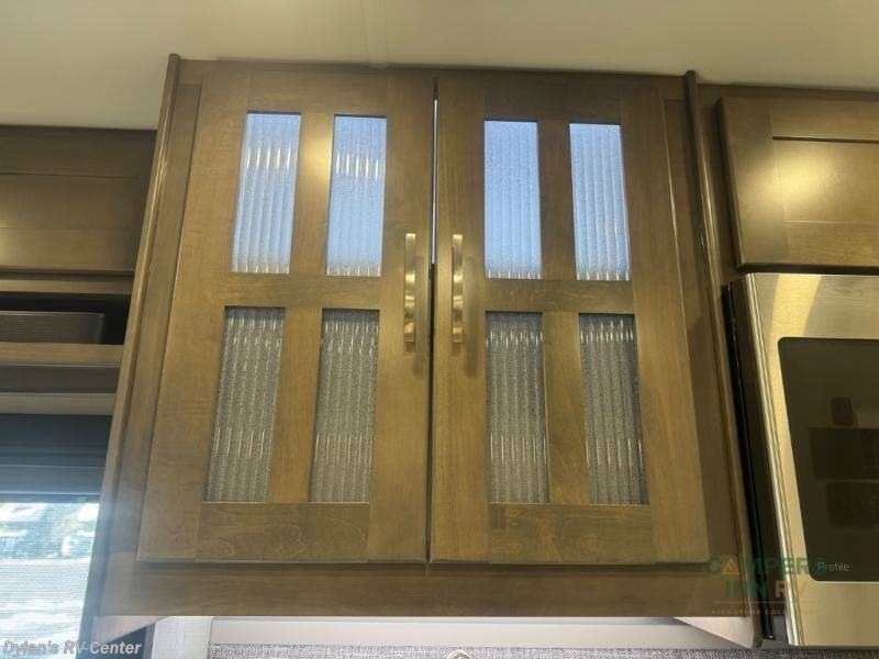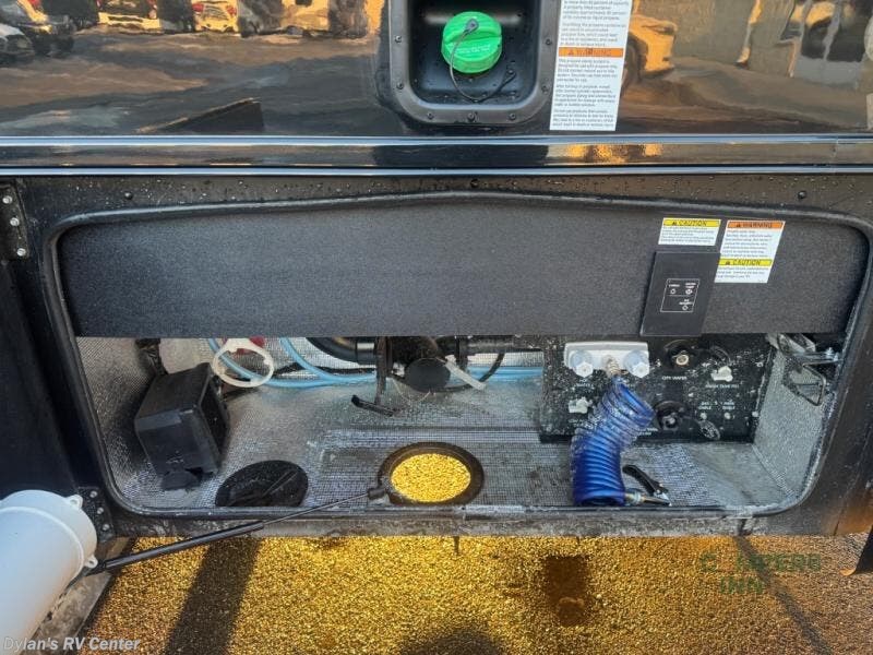 - Exterior storage compartments and a 16-foot power awning provide convenience and outdoor living space.
